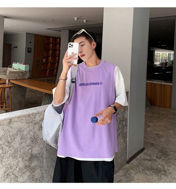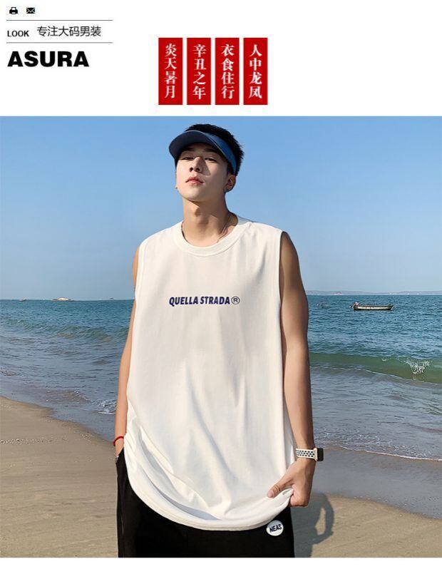 ノースリーブスウェット ルーズTシャツ スタイルサマー 大きめサイズ 夏物 ASURAプラスサイズメンズ7135687608