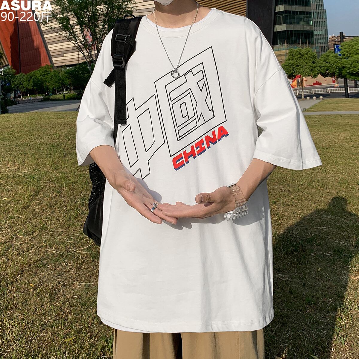Tシャツ ルーズサマーカジュアル コットン 大きめサイズ 夏物 ASURAプラスサイズメンズ33065526005