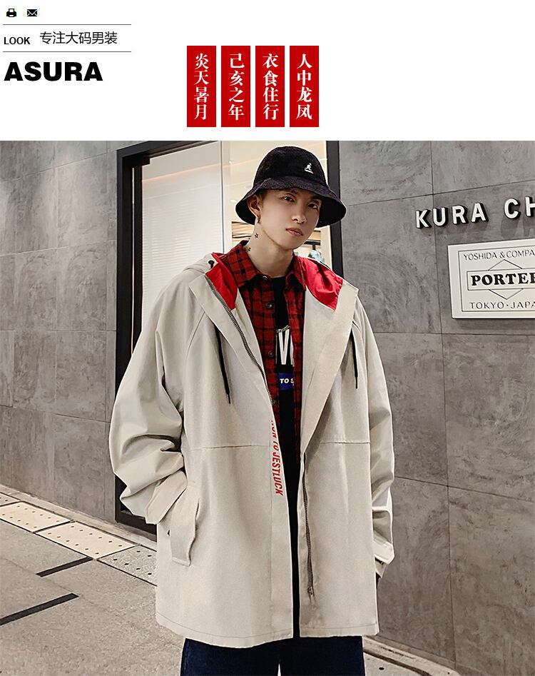 ジャケット ルーズフードスプリングオータムスタンダード レトロ 大きめサイズ 春物 秋物 ASURAプラスサイズメンズ56416794866