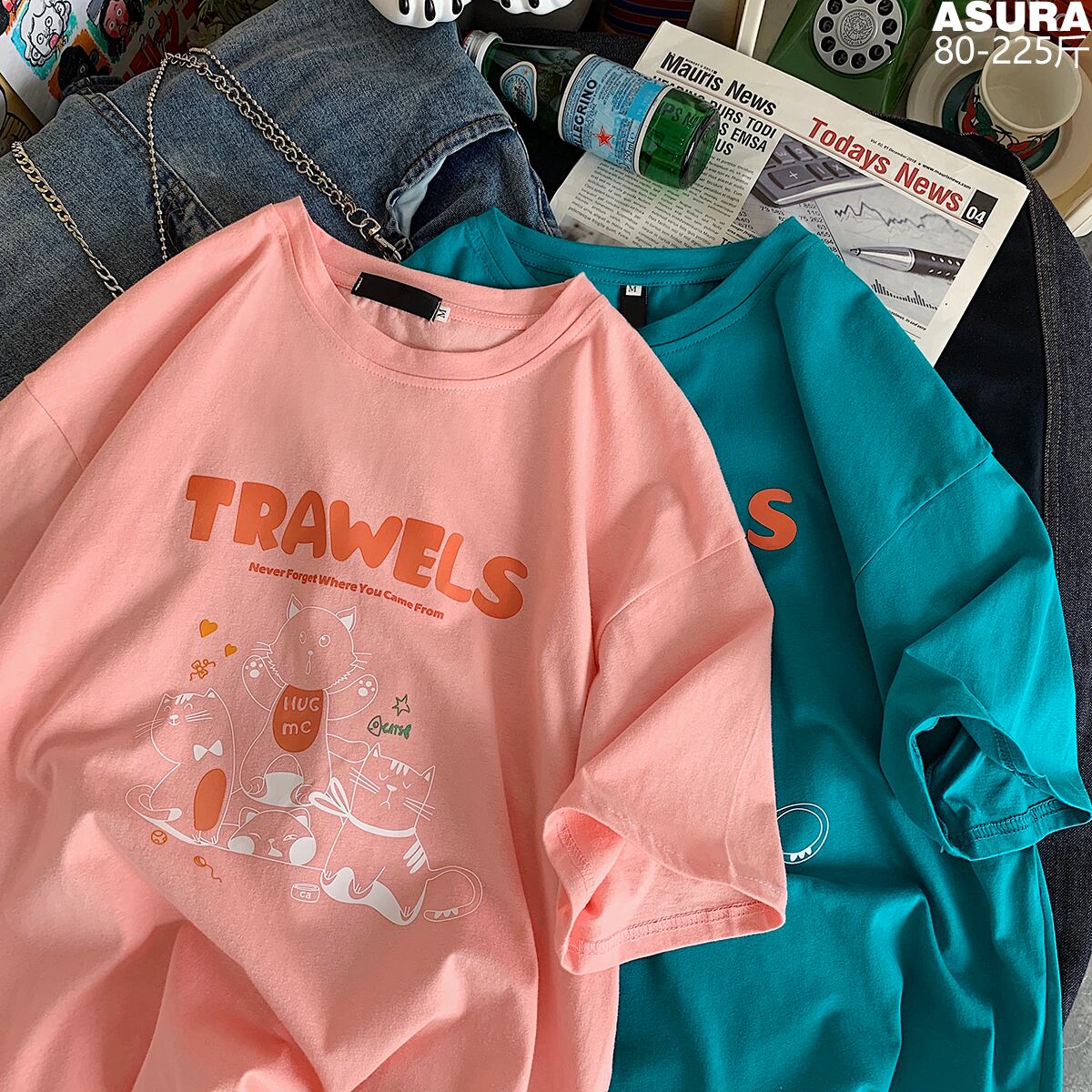 Tシャツ ルーズサマー コットン 大人ガーリー スウィート キュート カジュアル 夏物 ASURAプラスサイズメンズ71143351067