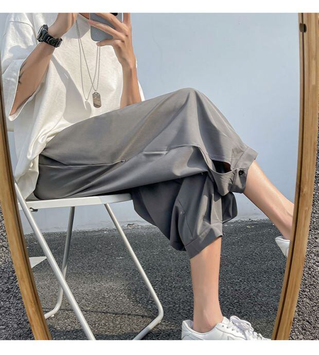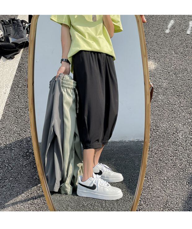 スリットバックルクロップドショーツ ルーズ薄手サマーカジュアル 大きめサイズ 夏物 ブルマー シルク ASURAプラスサイズメンズ29232543993