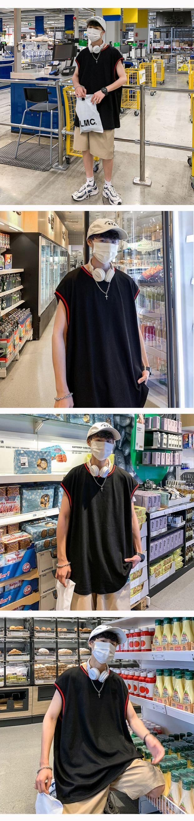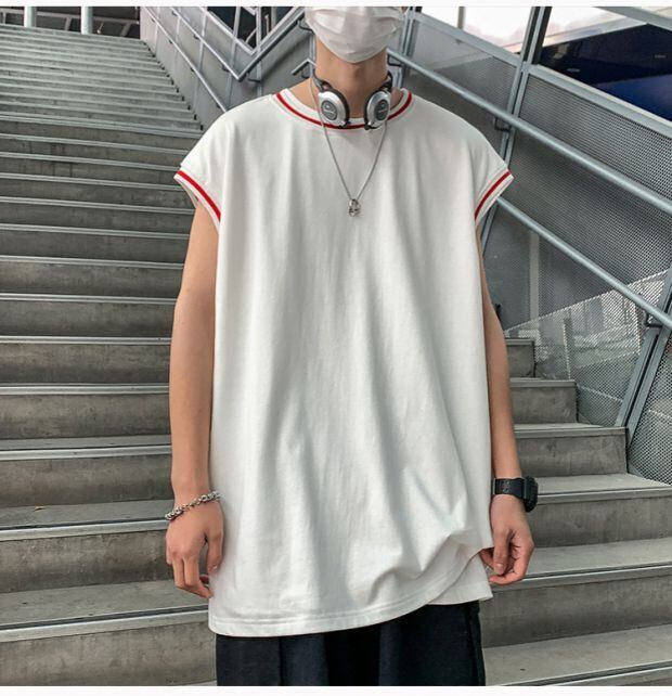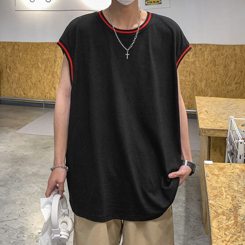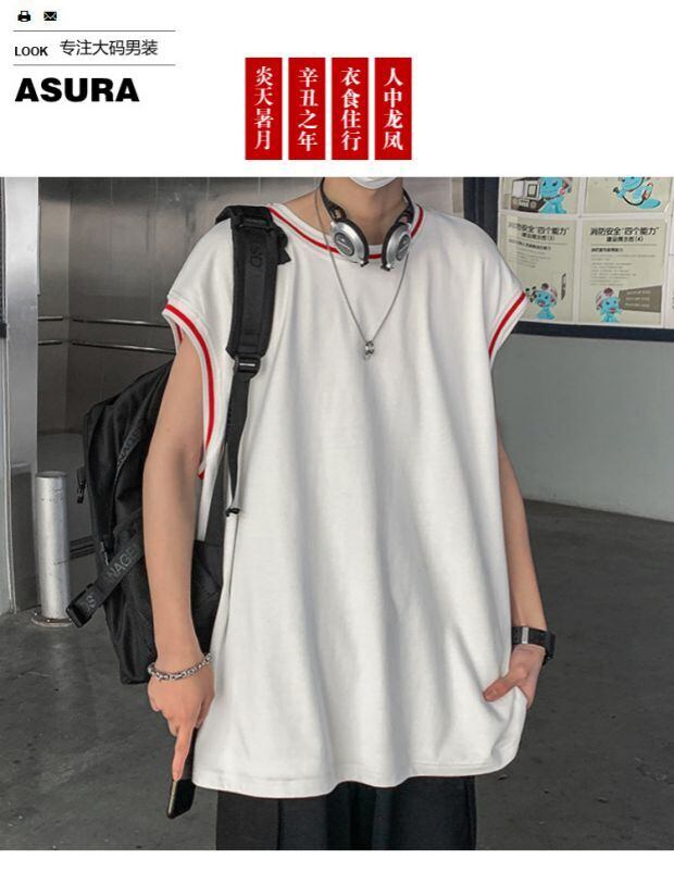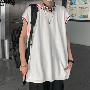 ストライプノースリーブTシャツ ルーズサマー 大きめサイズ 夏物 ASURAプラスサイズメンズ75277784030