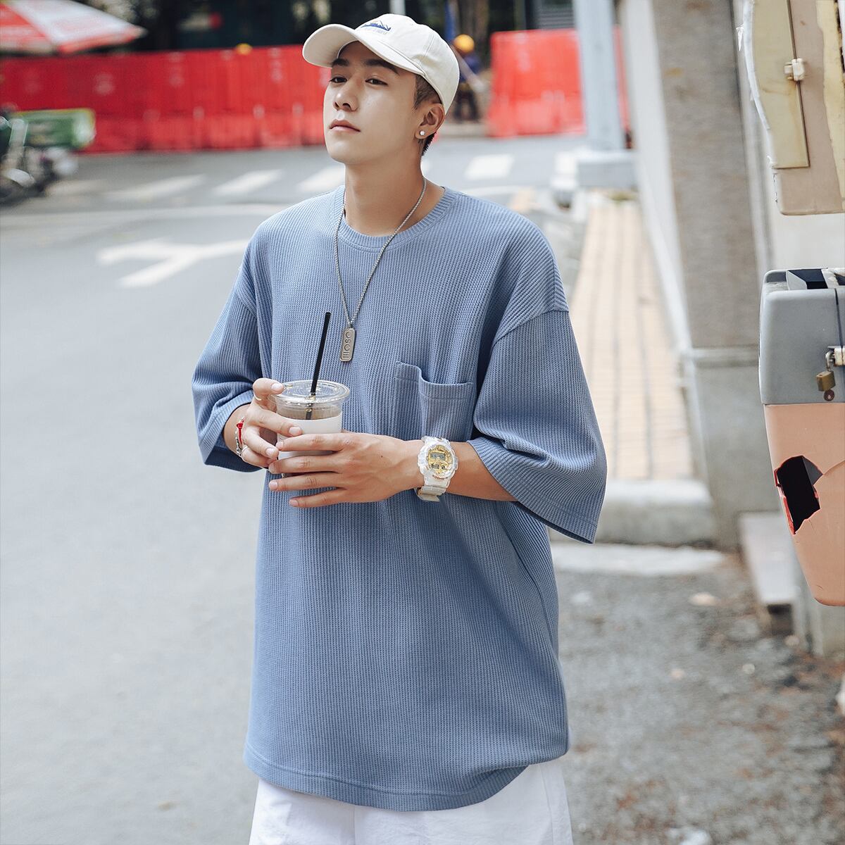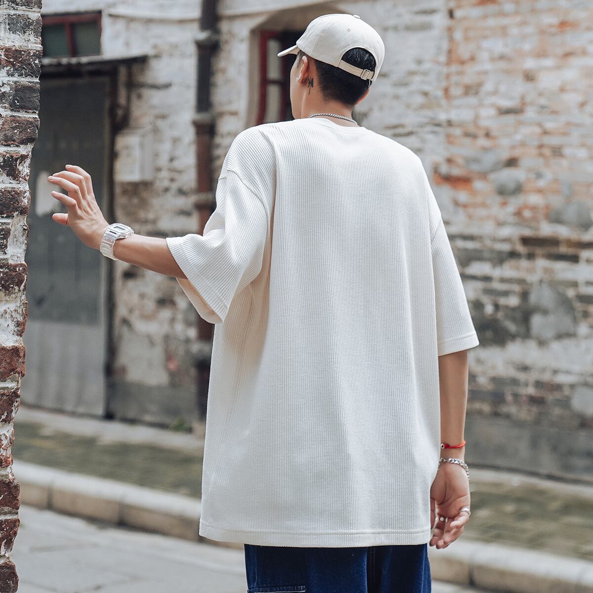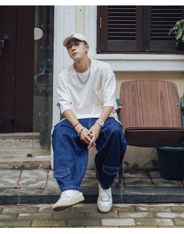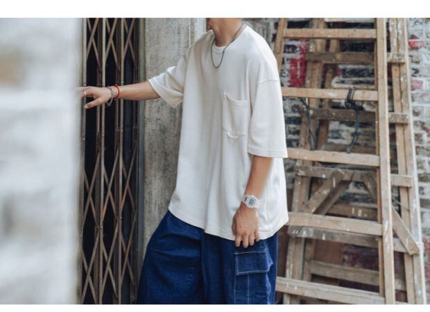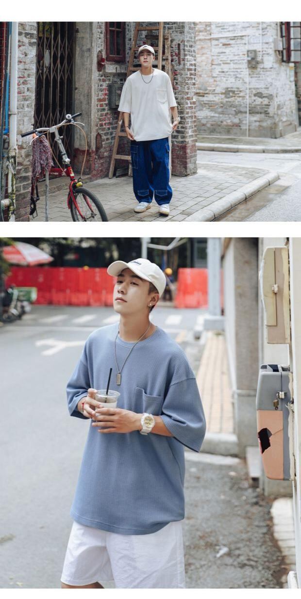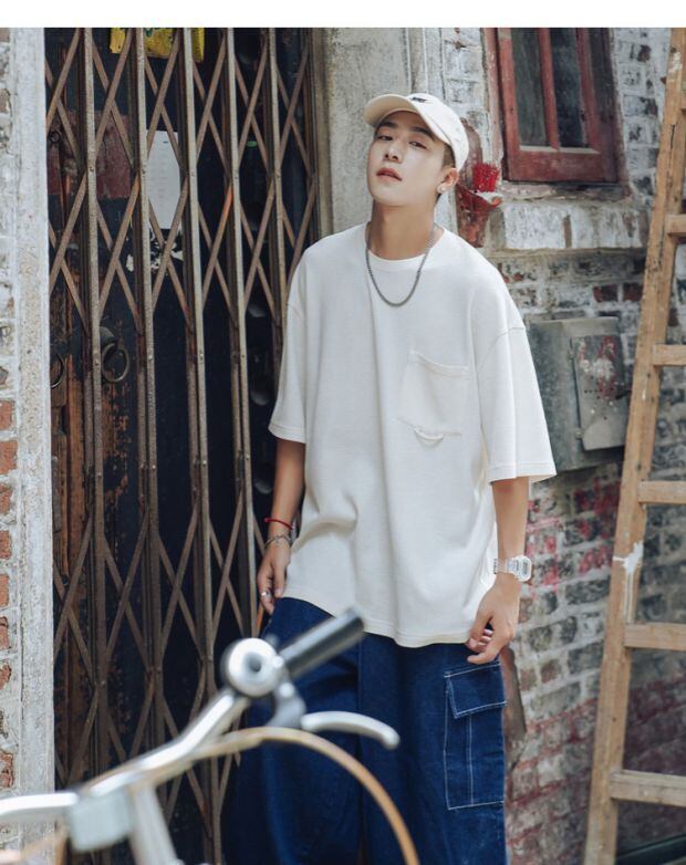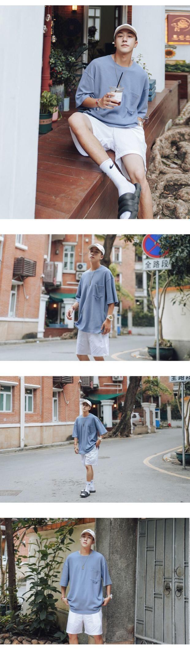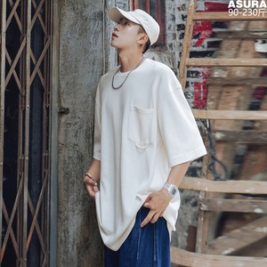ニットTシャツ ルーズラウンドネックサマースタンダード レトロ 大きめサイズ 夏物 Oネック ASURAプラスサイズメンズ57885315005