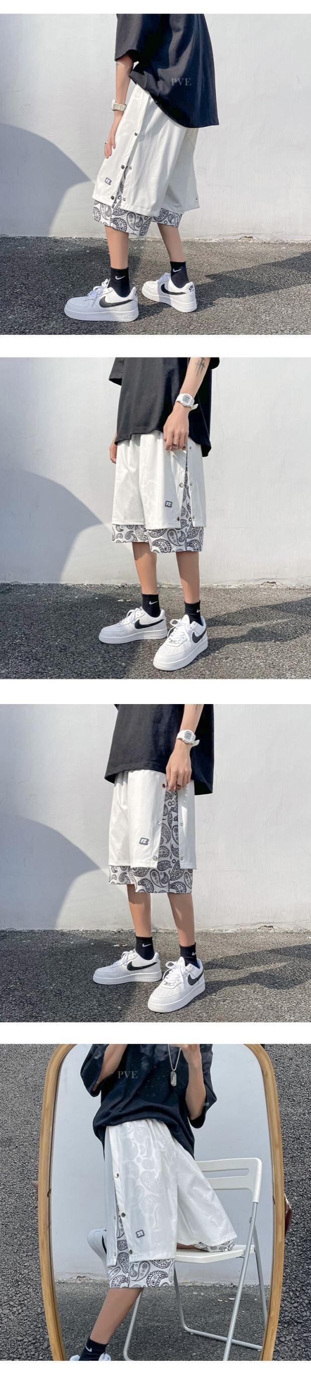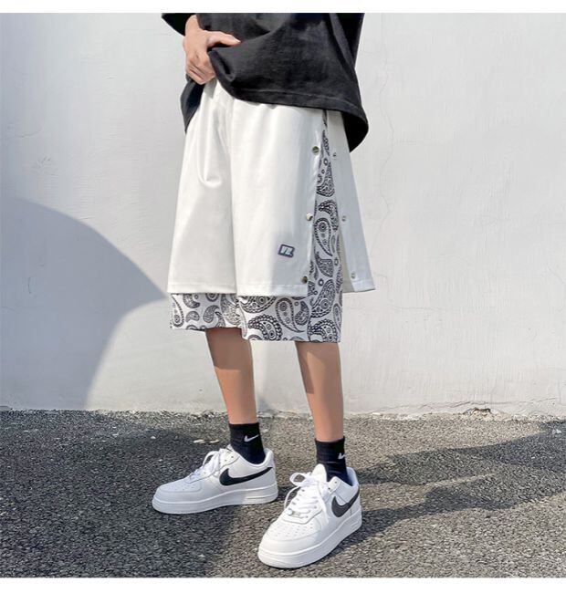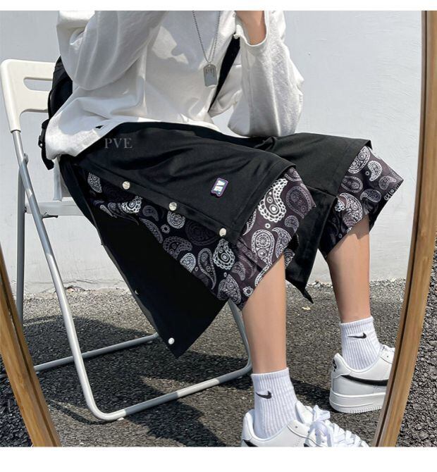 Flowerデザイン ブレストショーツ ルーズクロップドパンツ カジュアル薄手サマー ストリート 大きめサイズ 夏物 ブルマー フラワーデザイン ASURAプラスサイズメンズ20975473457