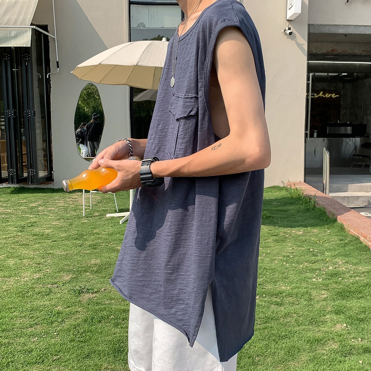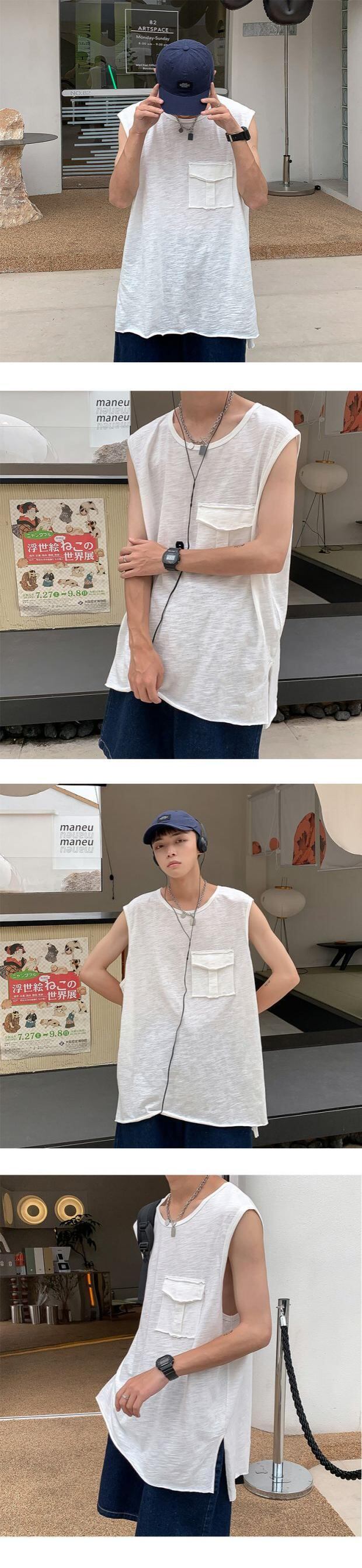 ポケットルーズノースリーブTシャツ サマースタイル 大きめサイズ 夏物 ASURAプラスサイズメンズ68104245079