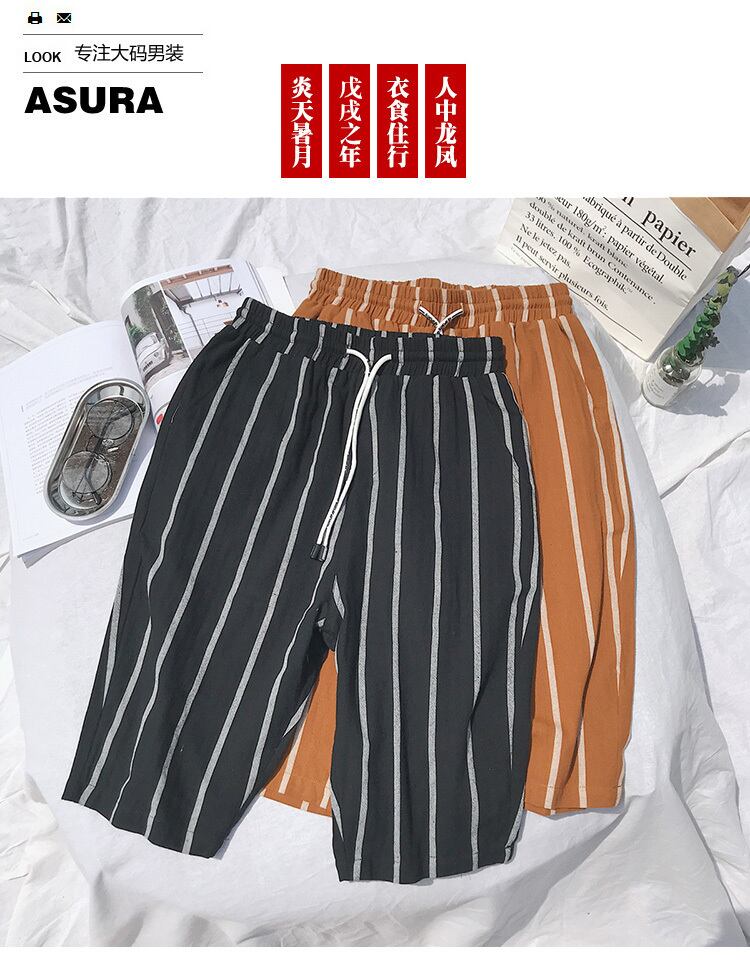 ストライプクロップドショーツ カジュアルルーズ薄手サマー 大きめサイズ 夏物 ブルマー ASURAプラスサイズメンズ37725080072