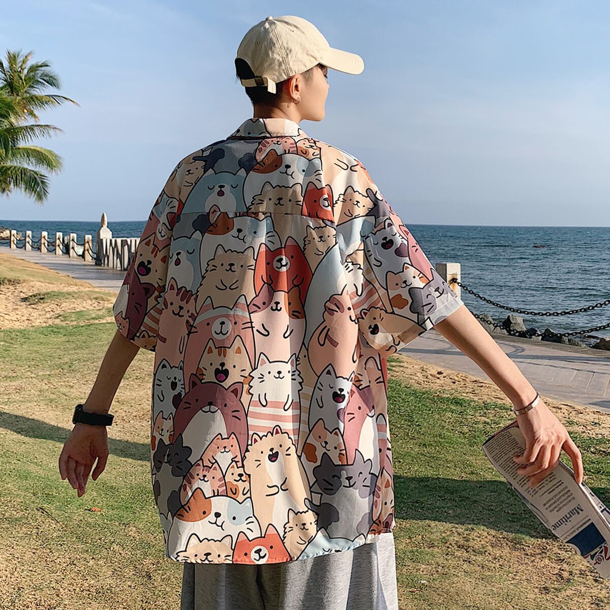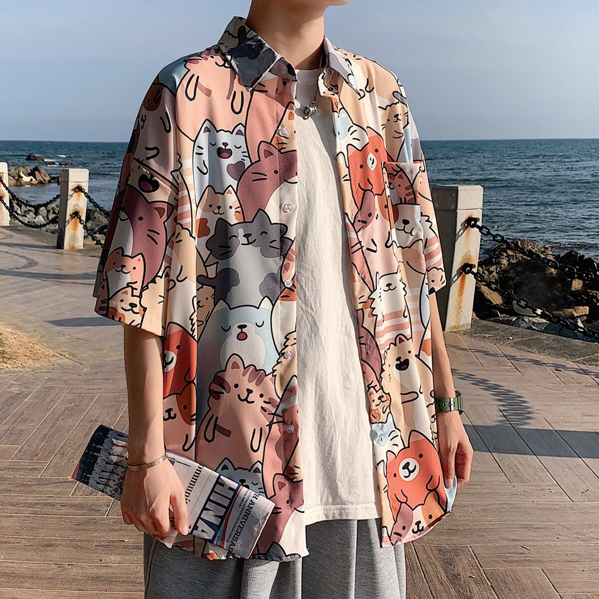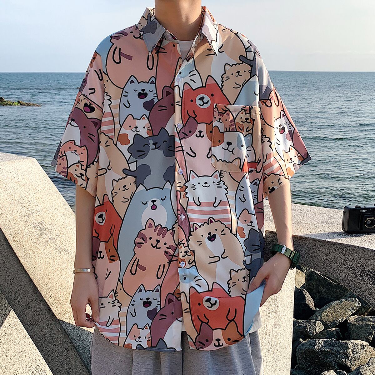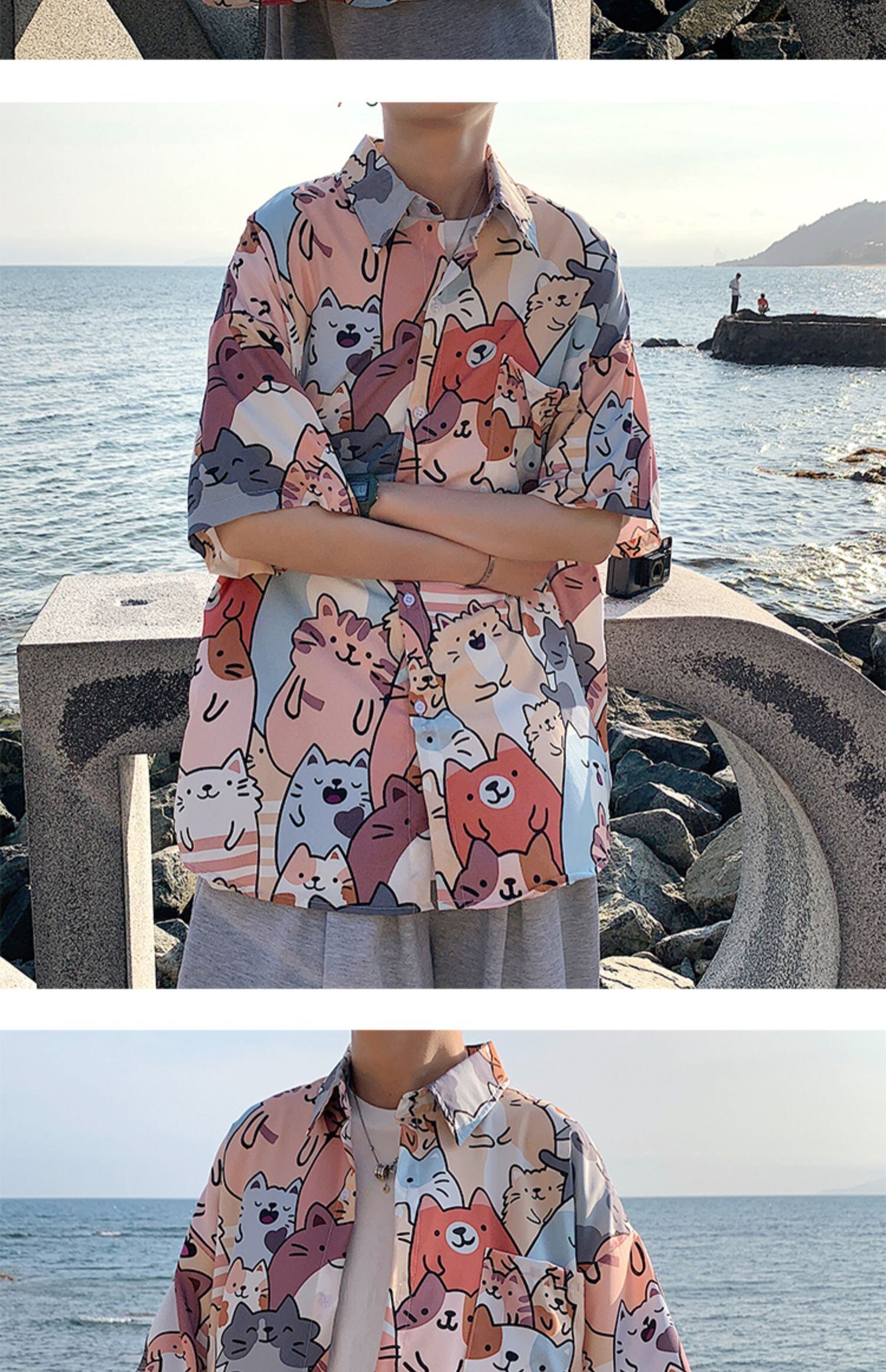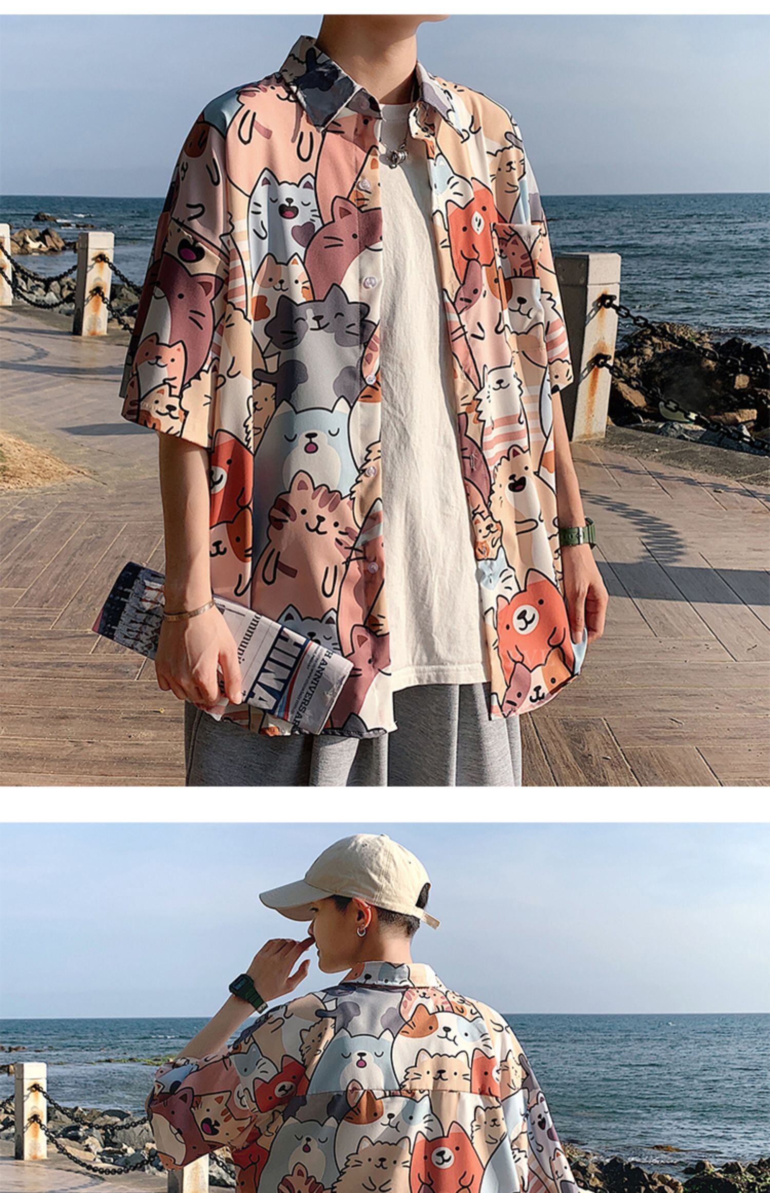 Flowerデザイン シャツ カジュアルルーズサマー薄手 大きめサイズ 夏物 ビーチ フラワーデザイン ASURAプラスサイズメンズ56966438452
