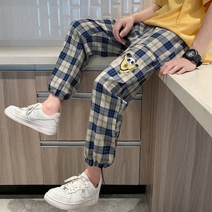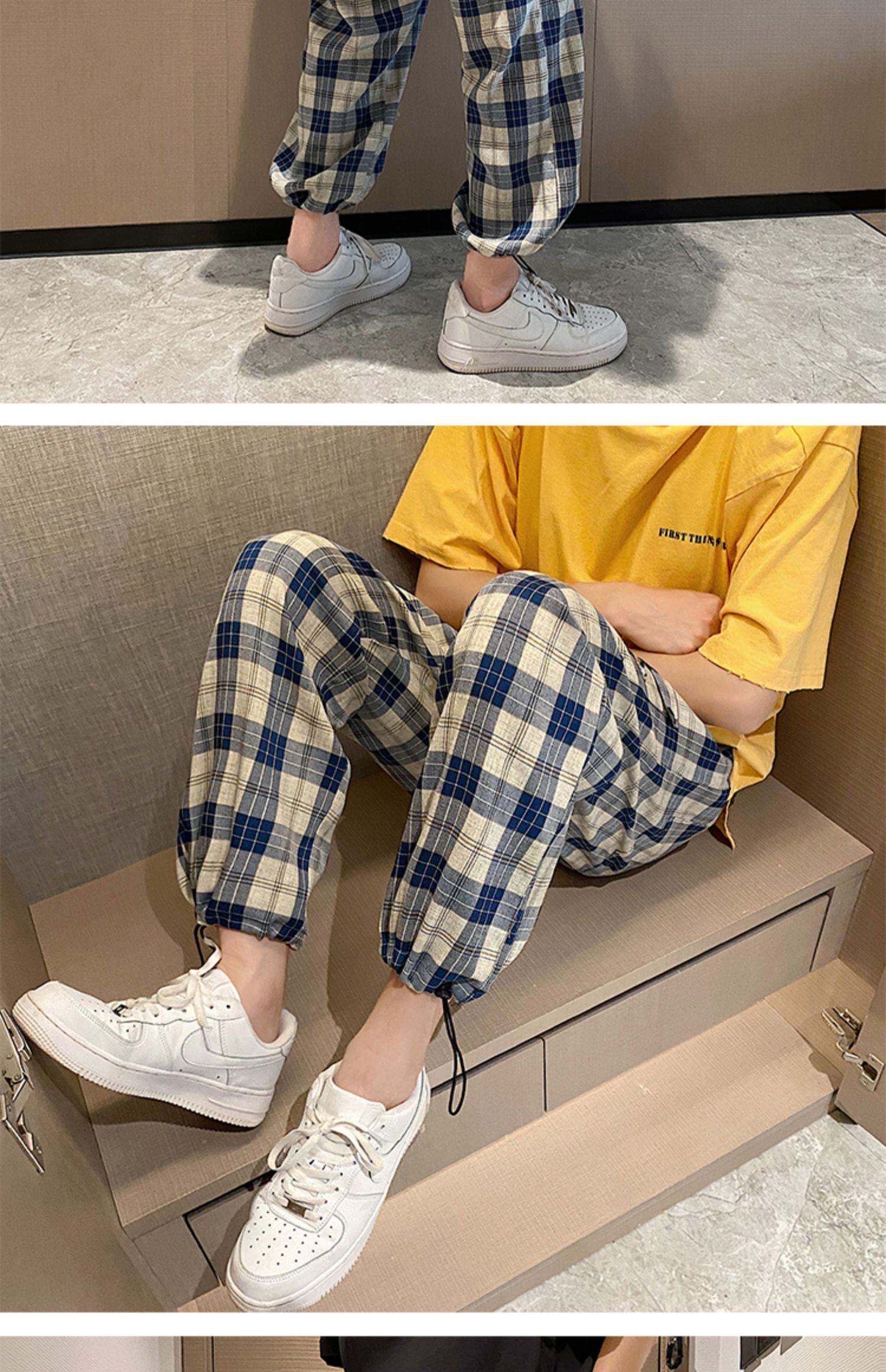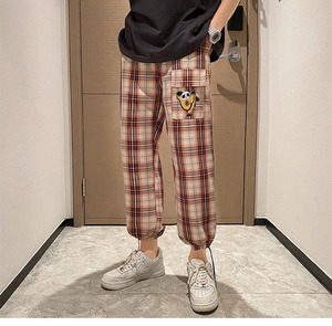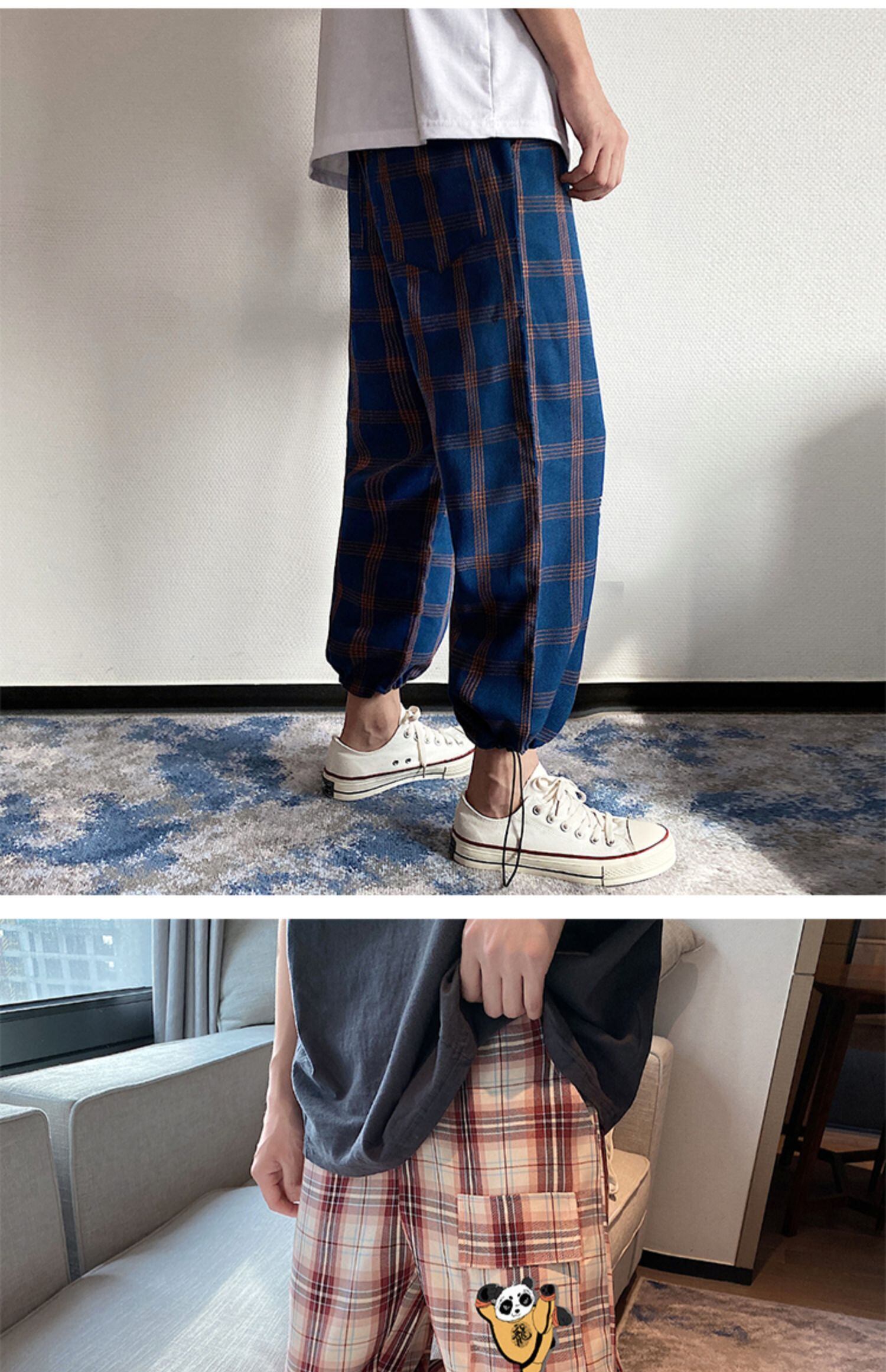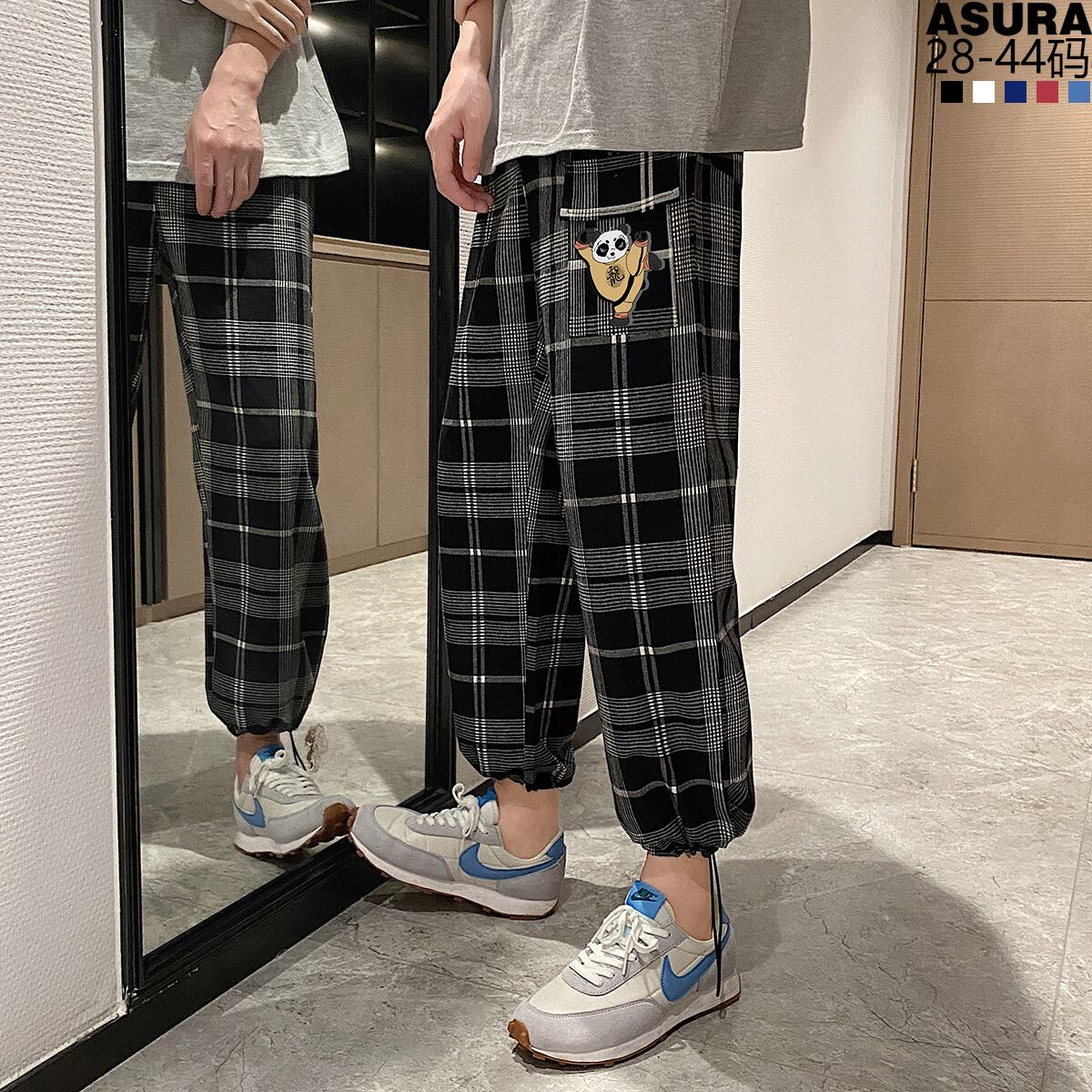 格子柄ロングパンツ ルーズカジュアルサマースタンダード レトロ 大きめサイズ 夏物 ASURAプラスサイズメンズ9880826394