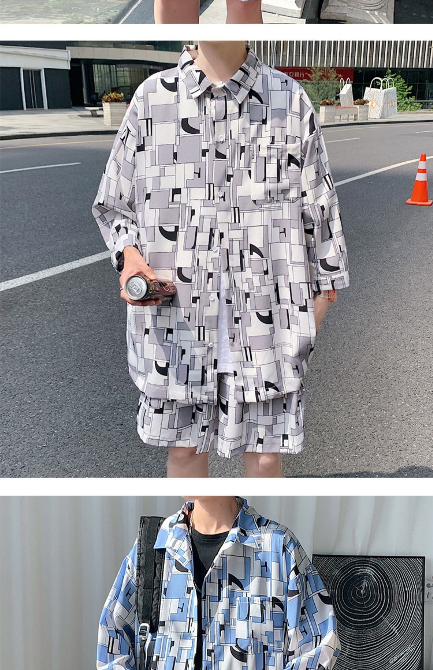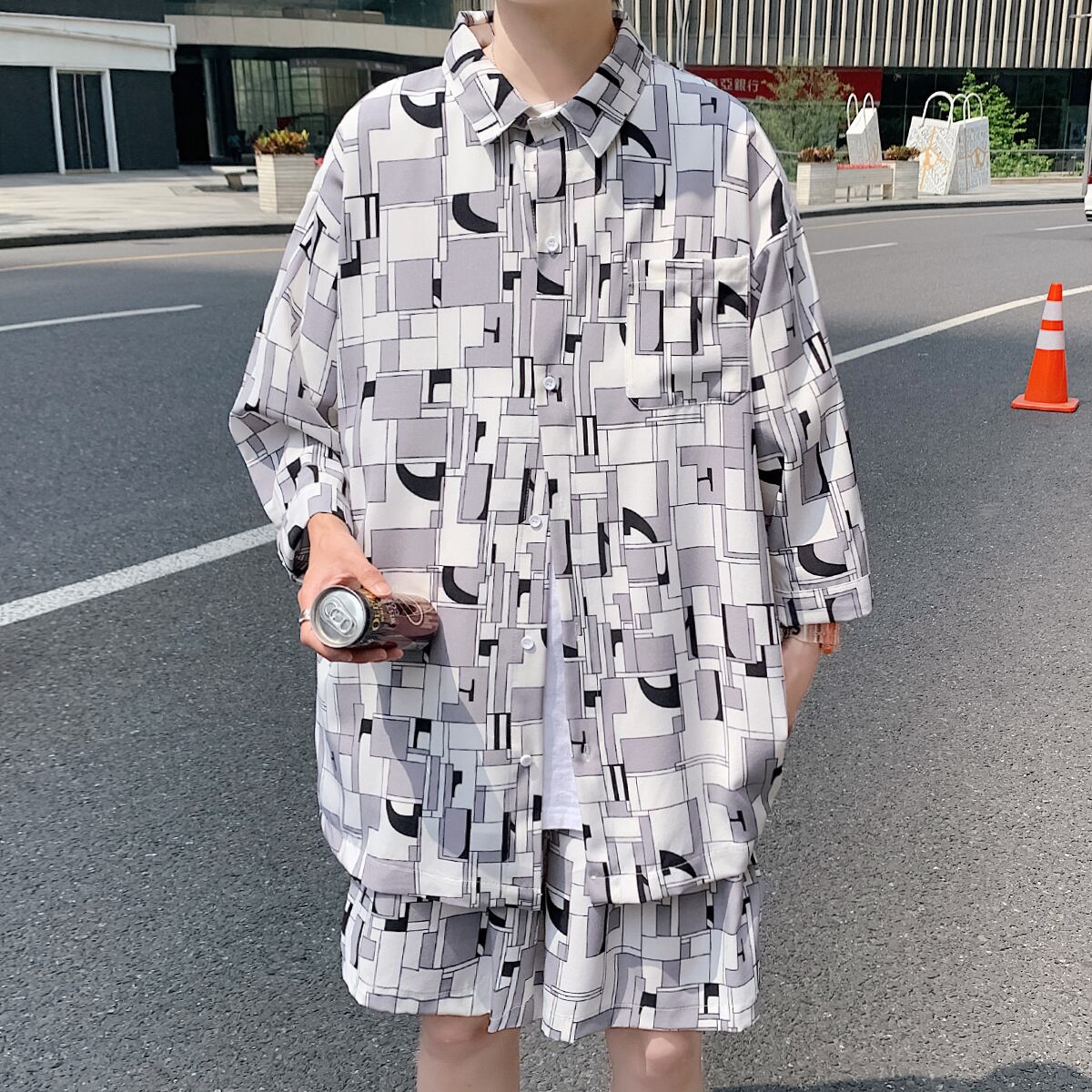カラーブロックシャツ ショーツ ルーズサマーカジュアル ストリート 大きめサイズ 夏物 ブルマー ASURAプラスサイズメンズ78051024718