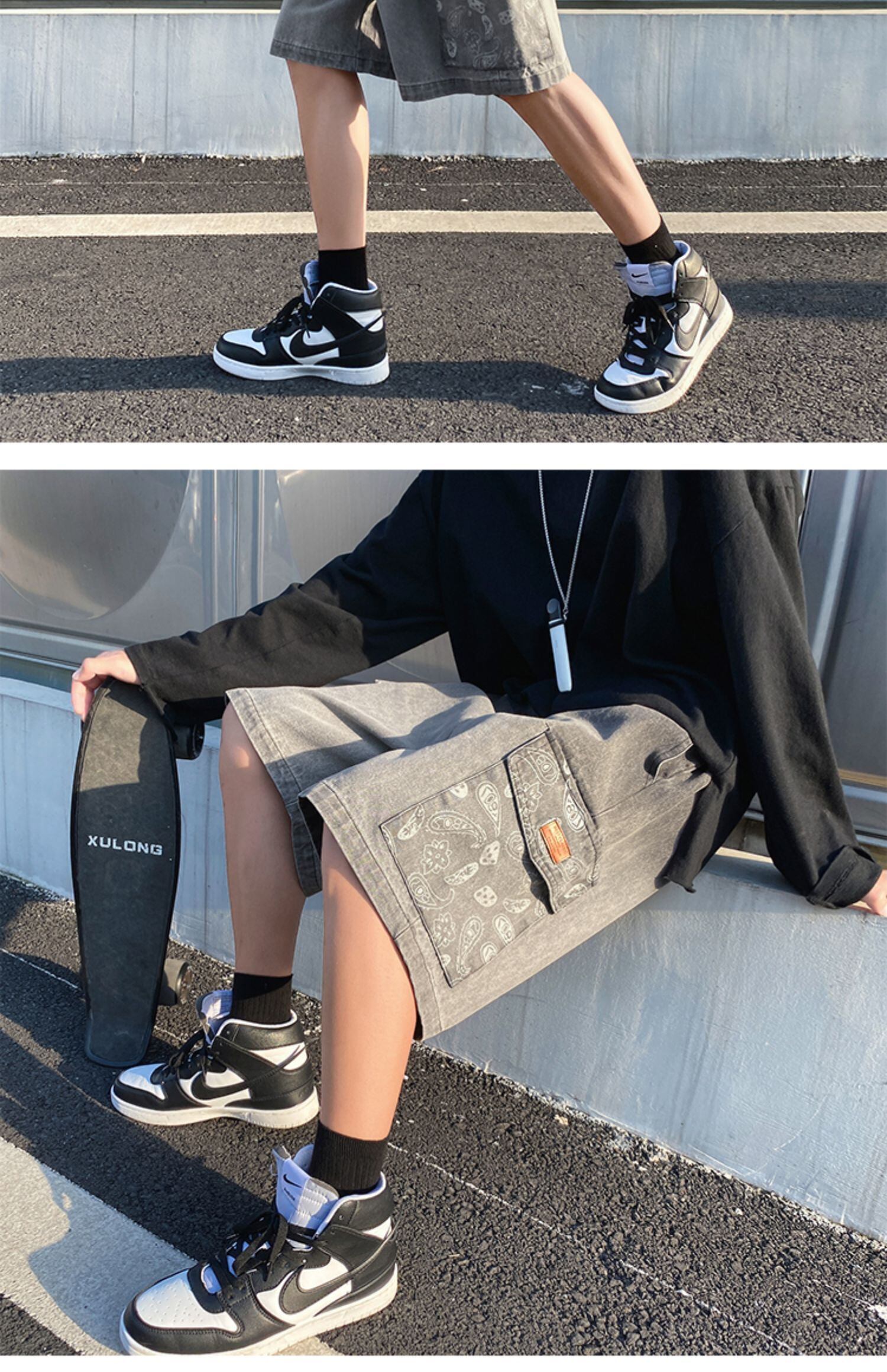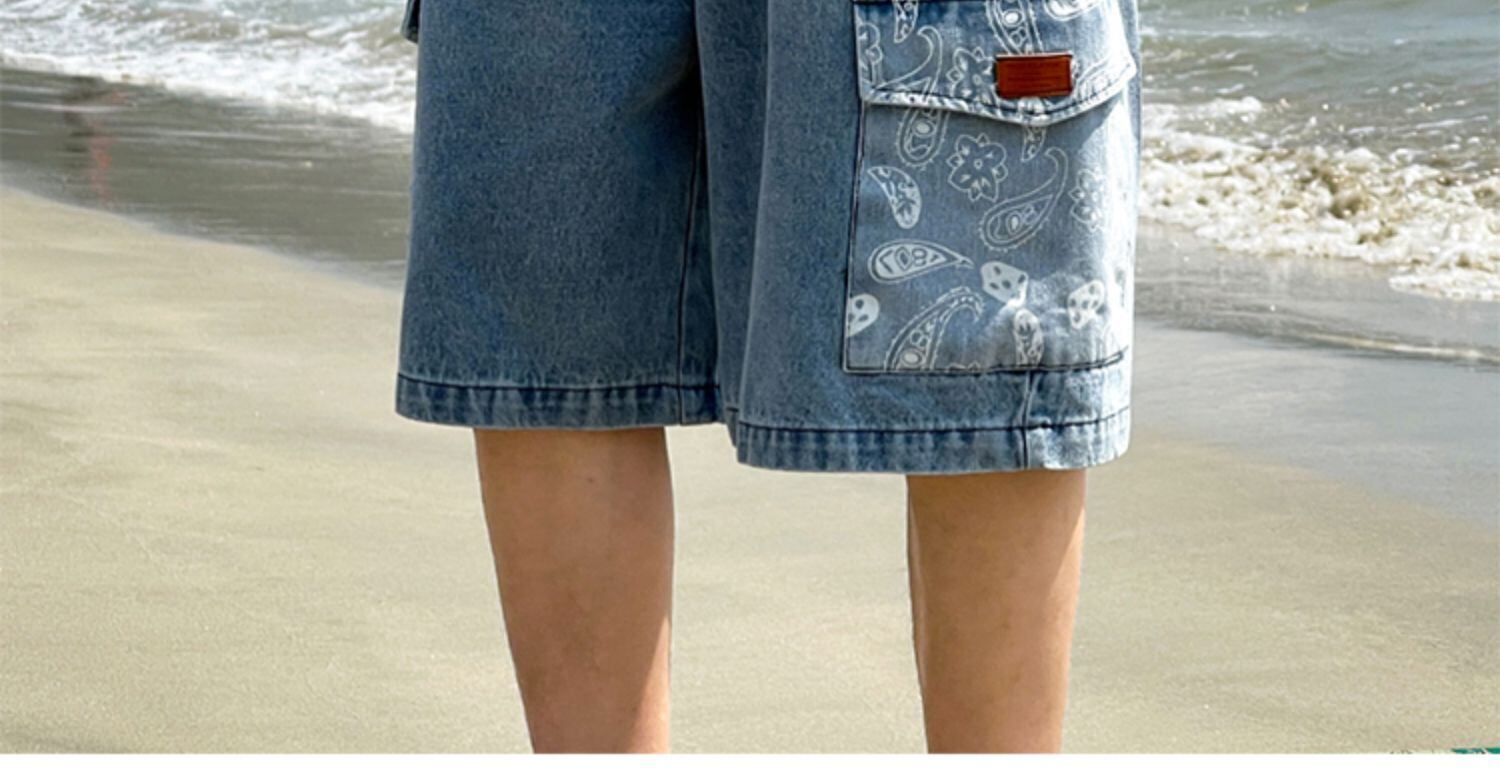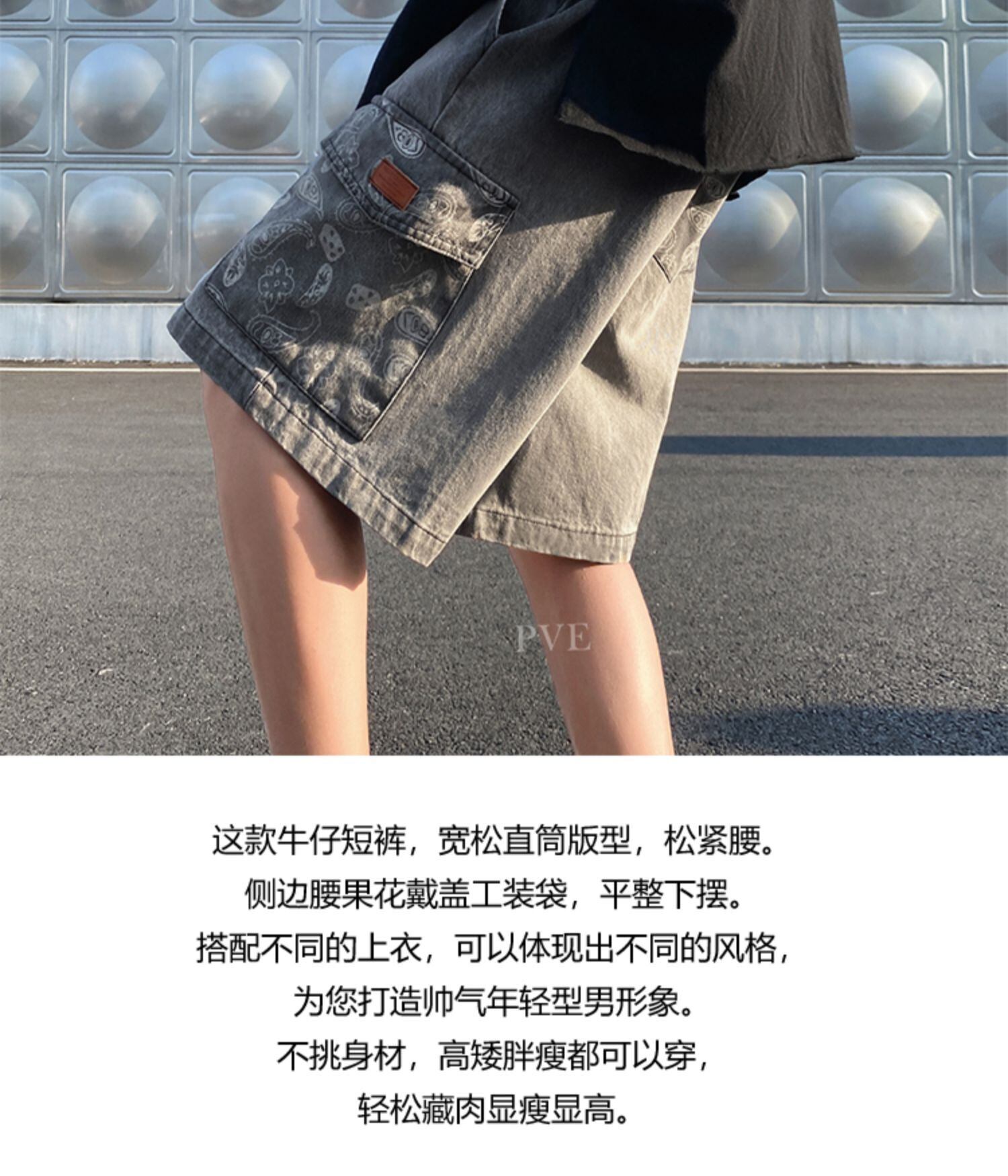 Flowerデザイン ポケットショーツ ルーズサマーカジュアルパンツ 大きめサイズ 夏物 ブルマー フラワーデザイン ASURAプラスサイズメンズ98316440786