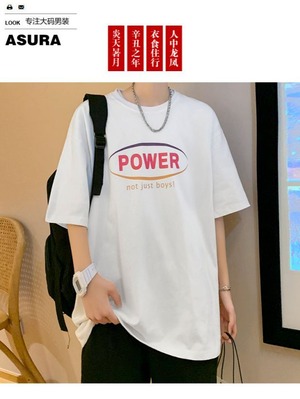 プリントTシャツ ルーズラウンドネックベーシックサマー 大きめサイズ 夏物 Oネック ASURAプラスサイズメンズ26881061933