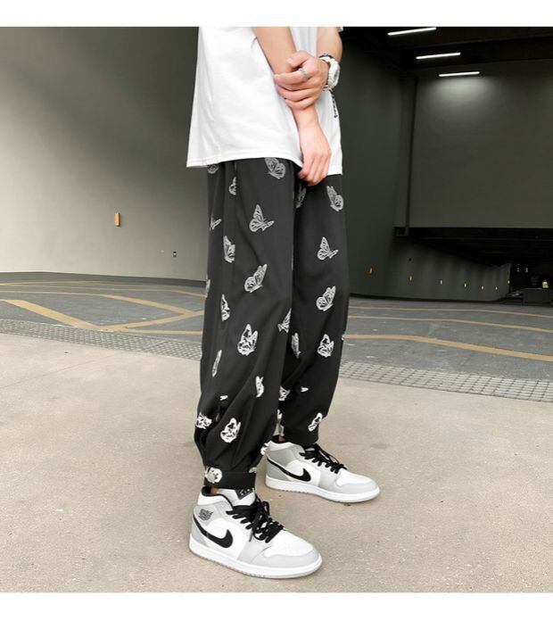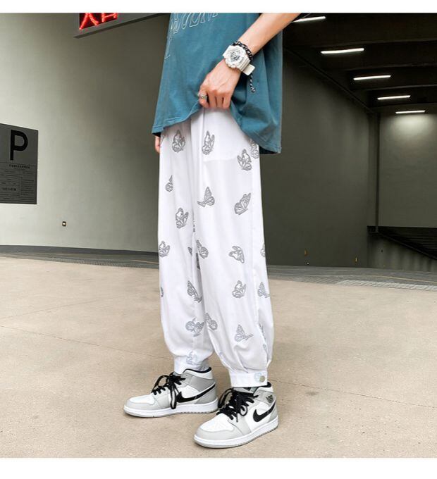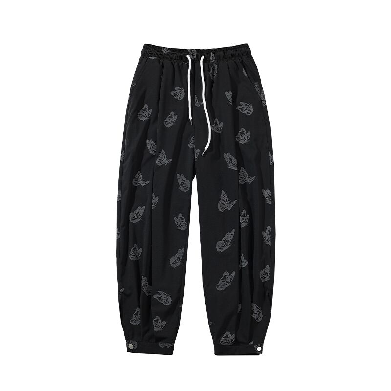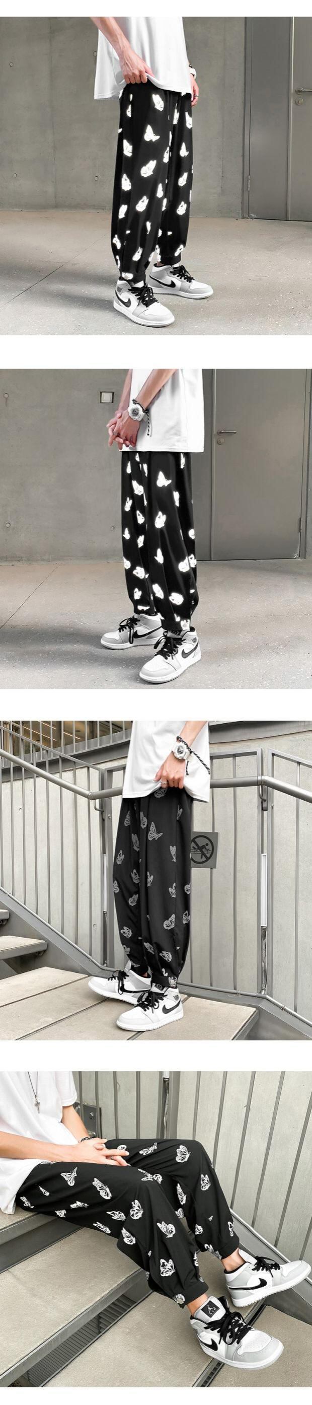 パンツ ルーズButterflyデザイン サマー ストリート 大きめサイズ 夏物 シルク ASURAプラスサイズメンズ19173128230