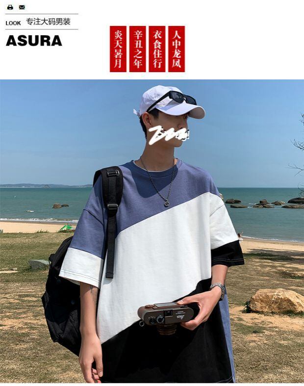 カラーTシャツ ルーズサマースタイル 大きめサイズ 夏物 ASURAプラスサイズメンズ41172590848
