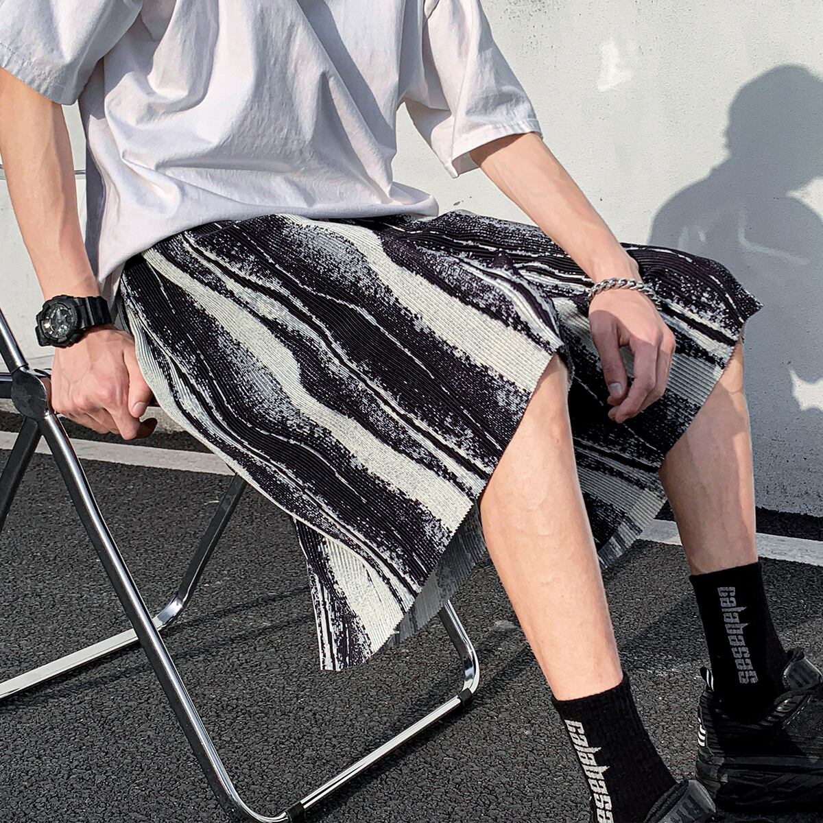 プリーツパンツ ショーツ スタイルルーズサマー ストリート 大きめサイズ 夏物 ブルマー シルク ASURAプラスサイズメンズ81114047906