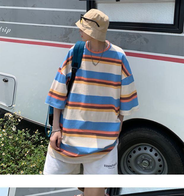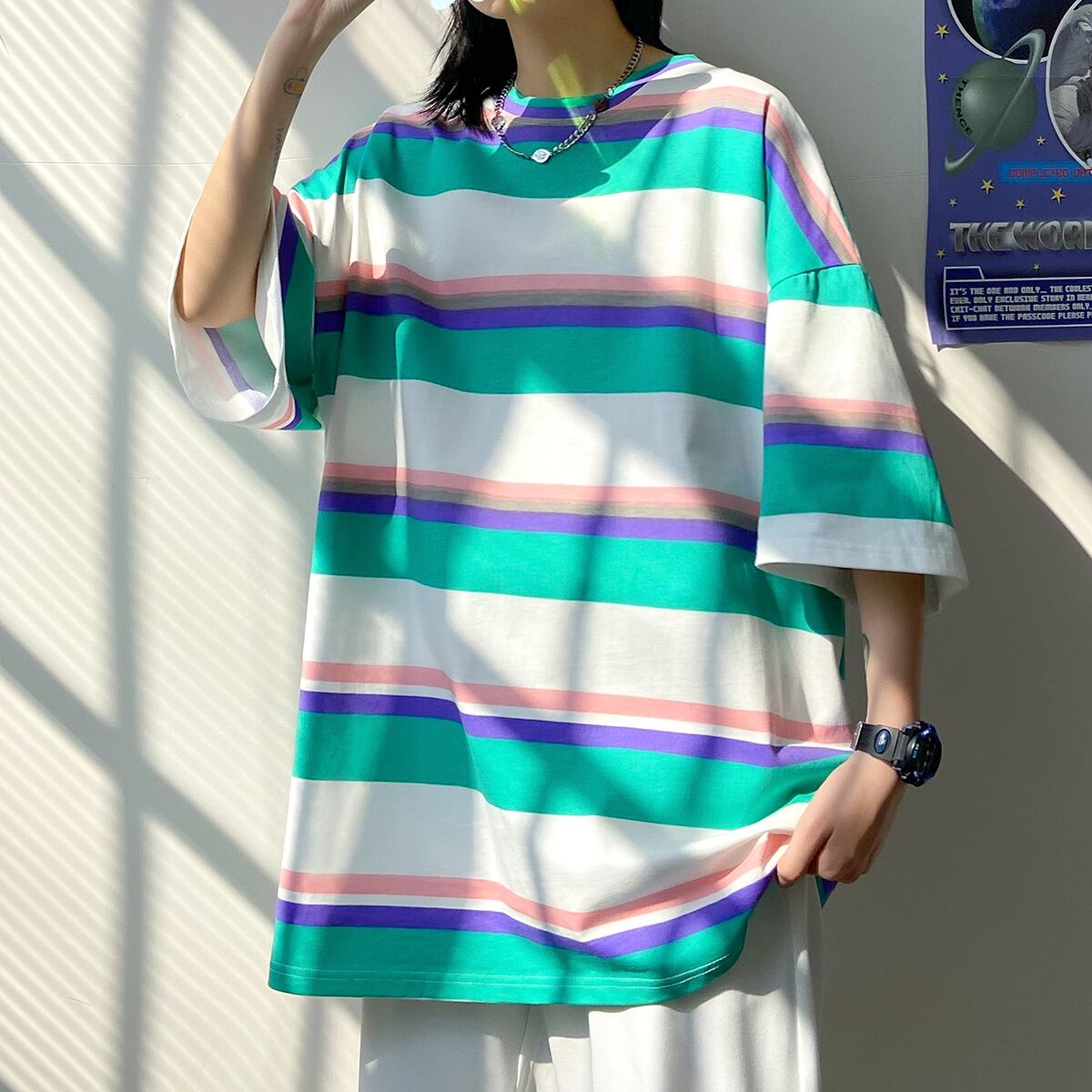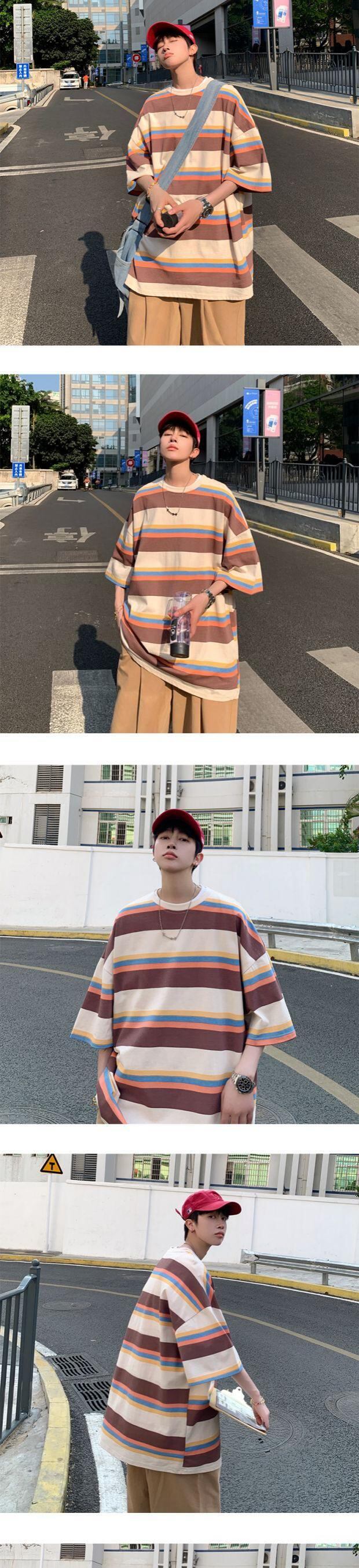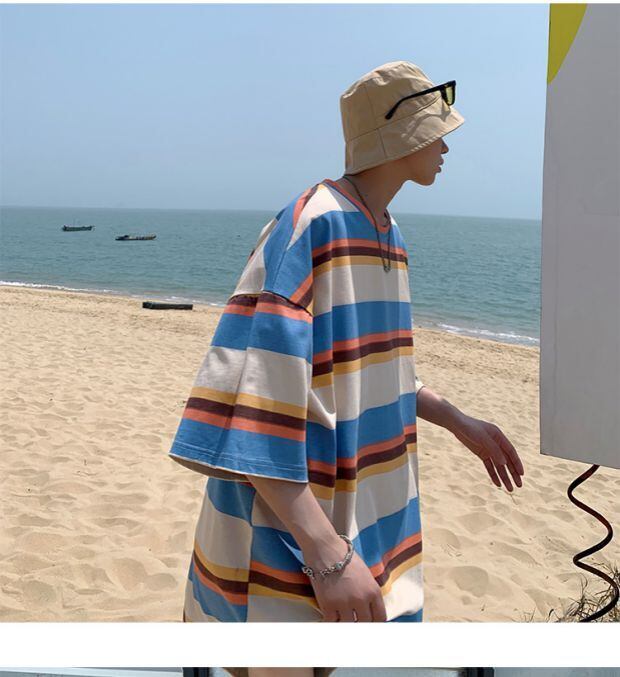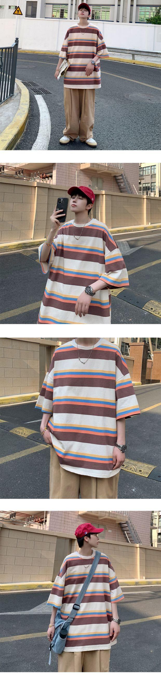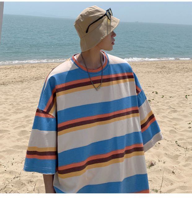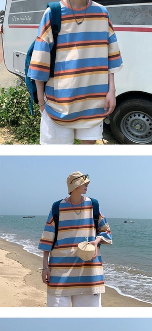 ストライプTシャツ ルーズサマースタイル 大きめサイズ 夏物 ASURAプラスサイズメンズ17814574557