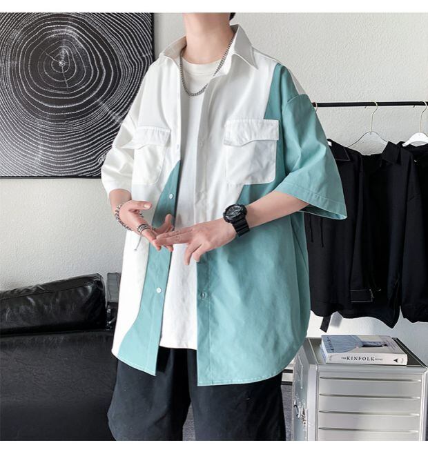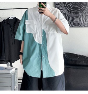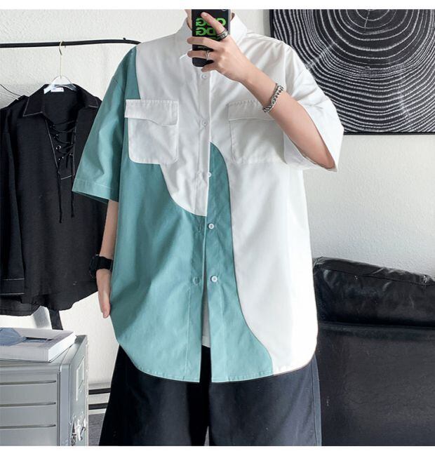 カラーシャツ ルーズサマー薄手スタイル ストリート 大きめサイズ 夏物 ステッチ ASURAプラスサイズメンズ32122008594