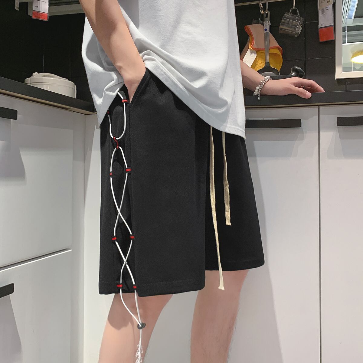 ギャザーストレッチショーツ ルーズパンツ サマー薄手ニット エラスティック 伸縮 大きめサイズ 夏物 ブルマー ASURAプラスサイズメンズ15425417459