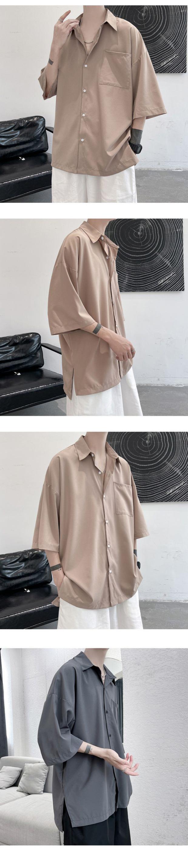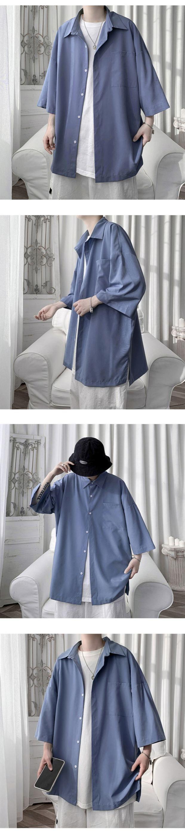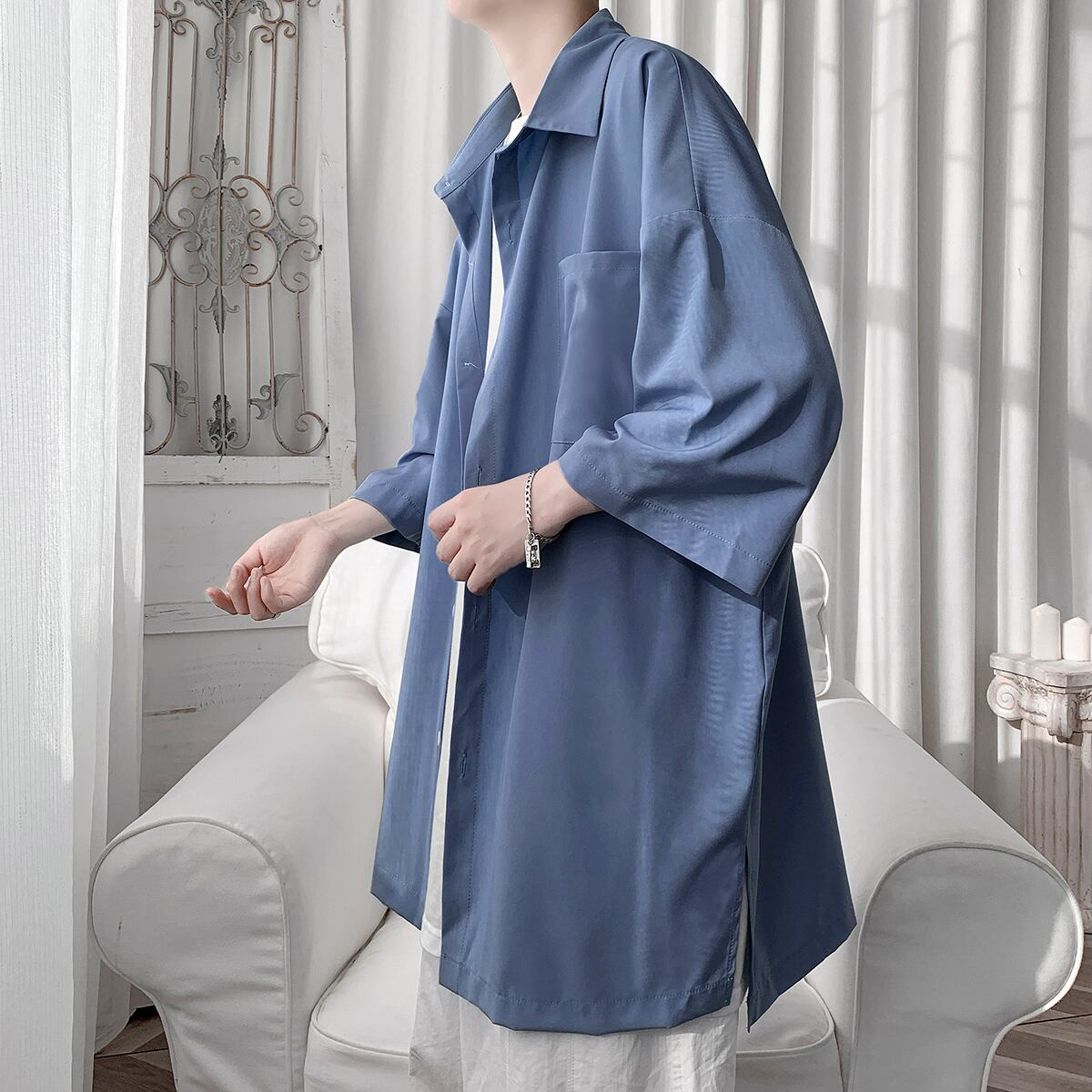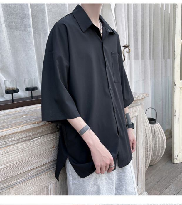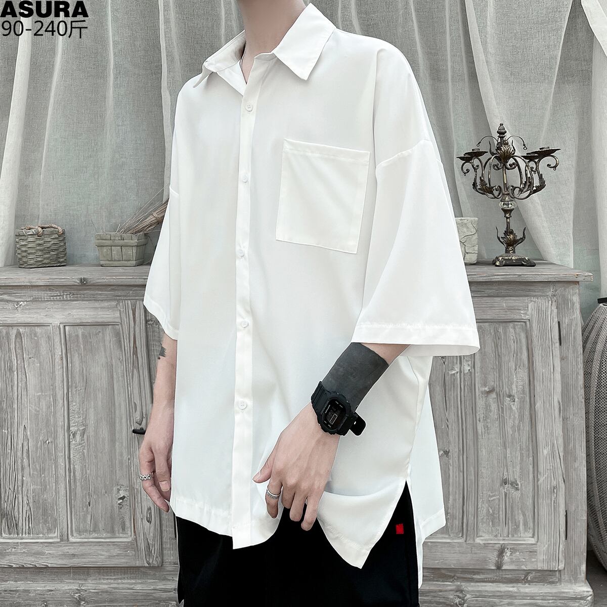 スリットシャツ 薄手ルーズサマースタイル 大きめサイズ 夏物 シルク ASURAプラスサイズメンズ99836419113