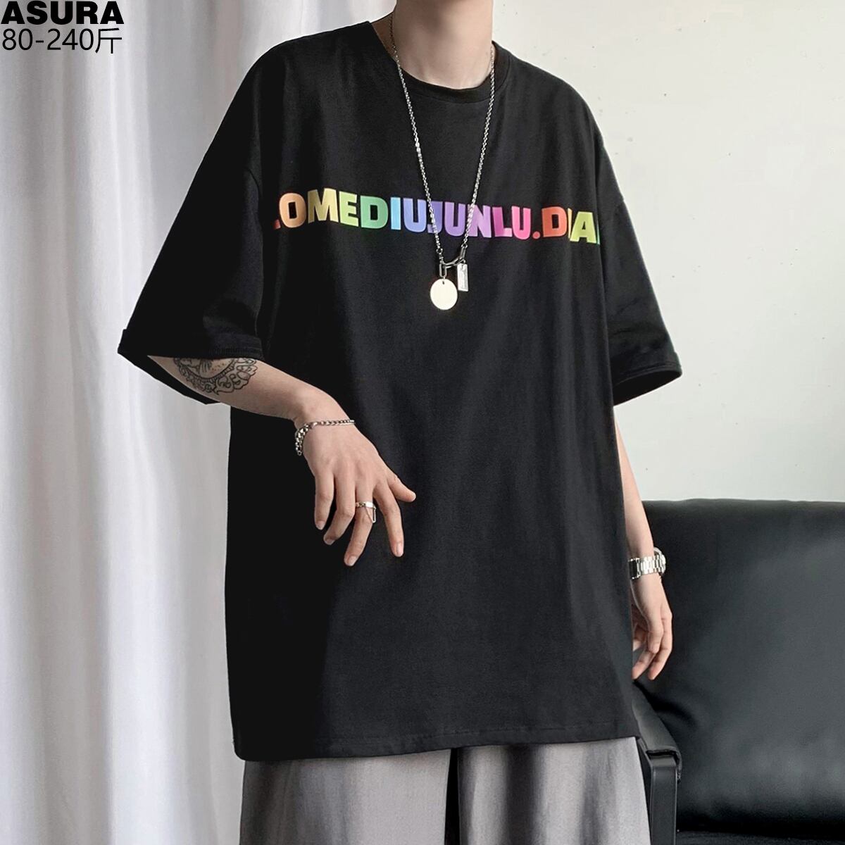 Tシャツ ルーズサマー ストリート 大きめサイズ 夏物 ASURAプラスサイズメンズ15446143157