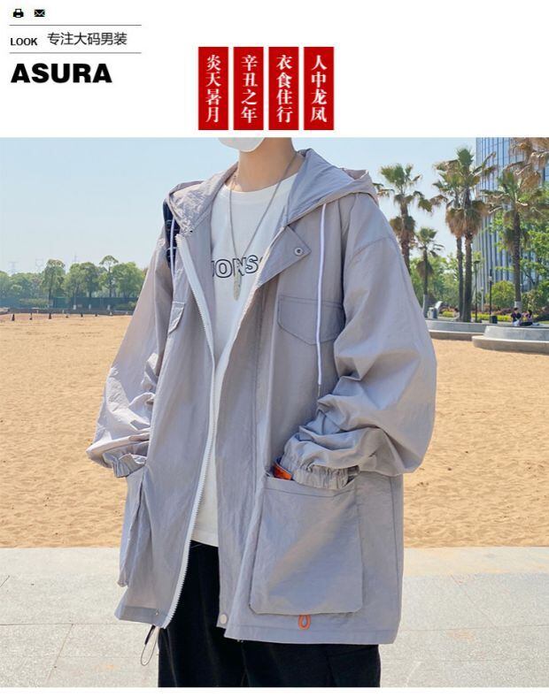 薄手フードジャケット ルーズサマースタイル 大きめサイズ 夏物 ASURAプラスサイズメンズ19575657365