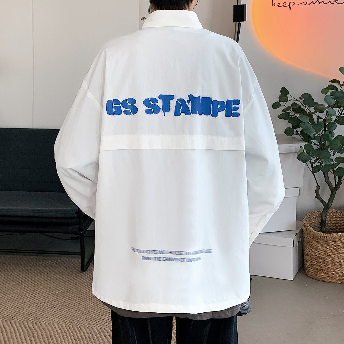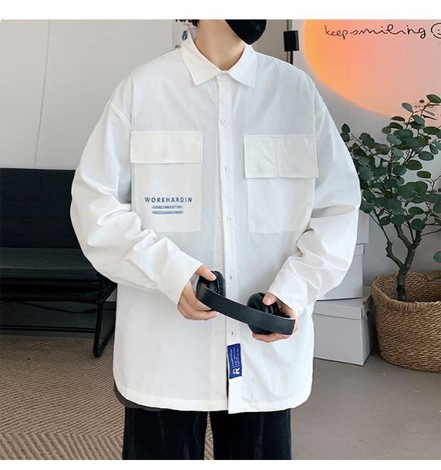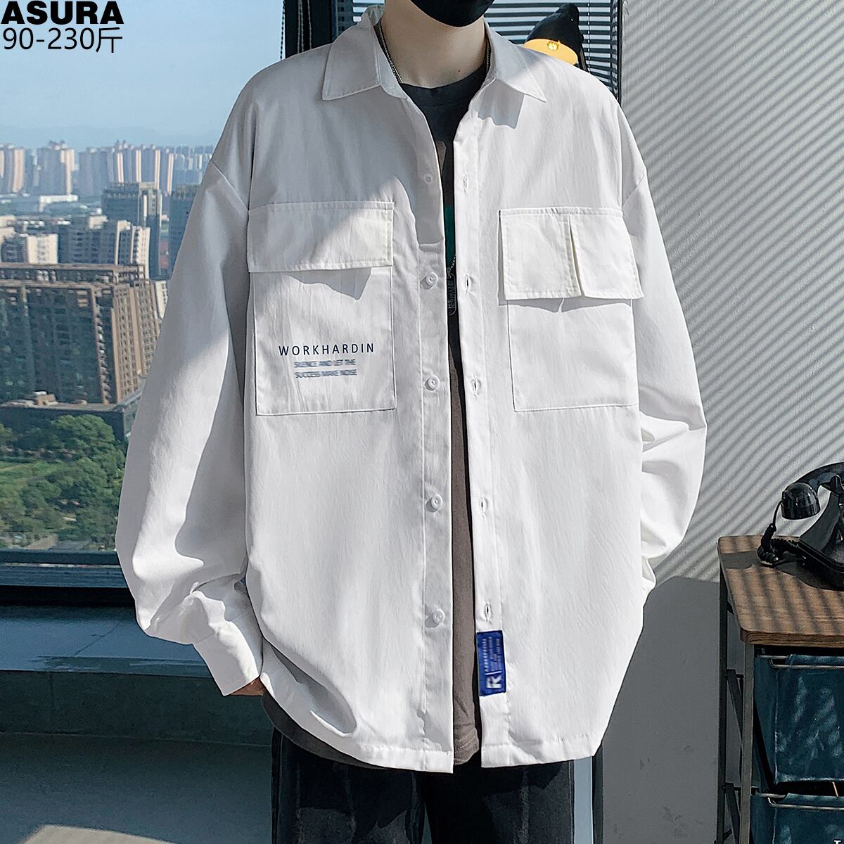 ホワイトシャツ ルーズスプリングオータムスタイル ロング 大きめサイズ 春物 秋物 ASURAプラスサイズメンズ75556125483