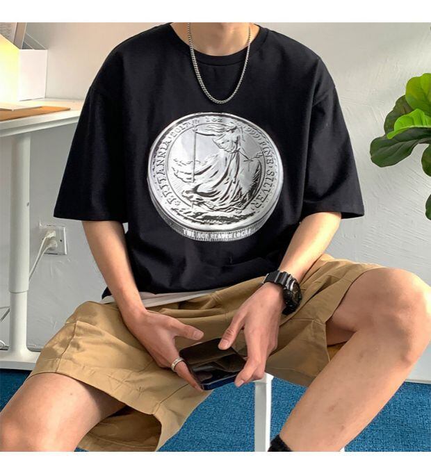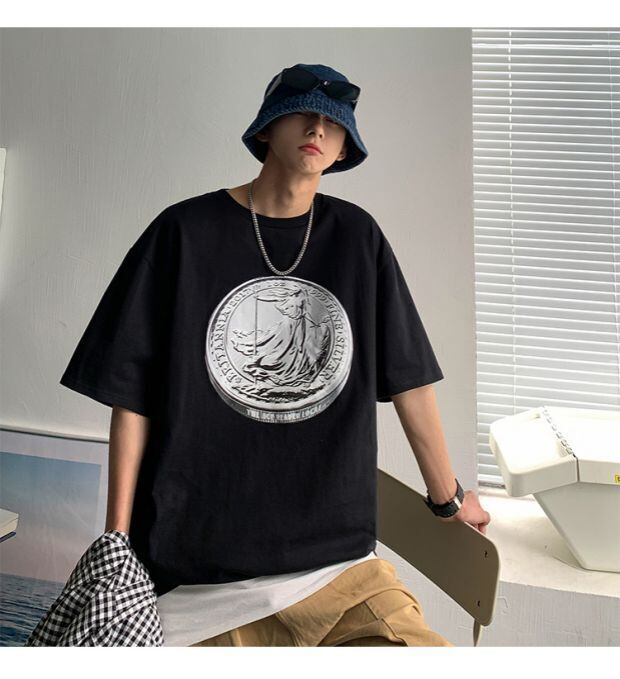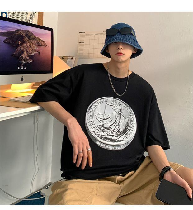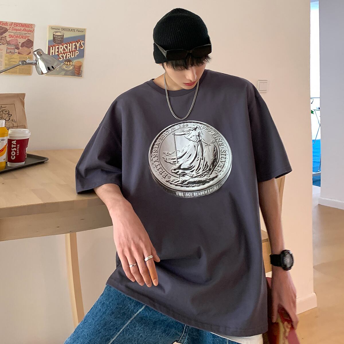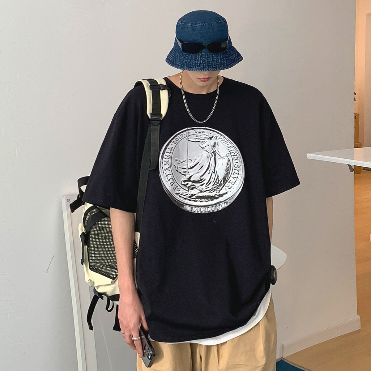 プリント柄Tシャツ ルーズ薄手サマーカジュアルスタイル 大きめサイズ 夏物 ASURAプラスサイズメンズ23099543747