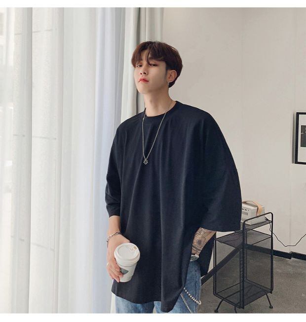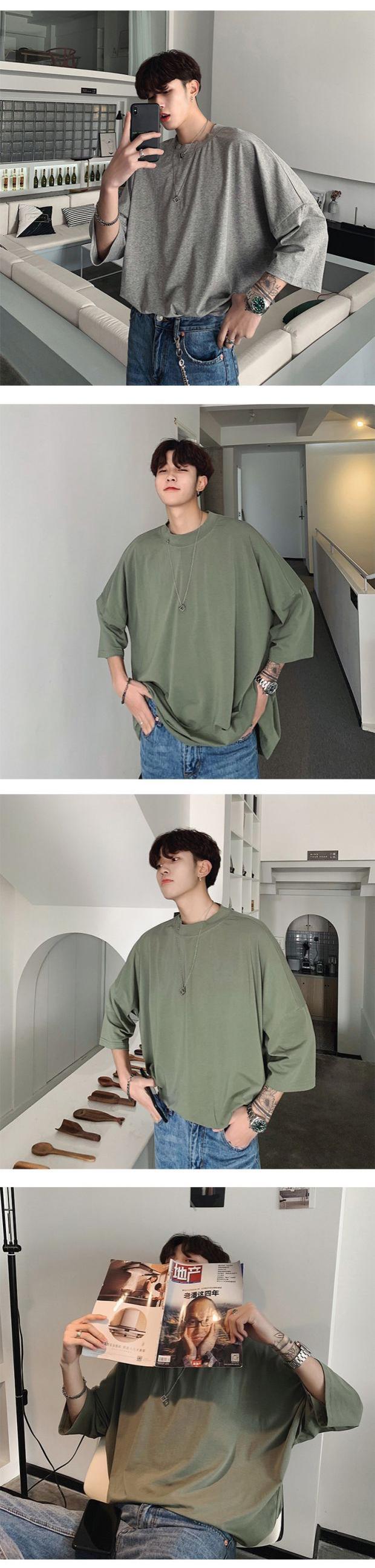ソリッド カラーTシャツ ラウンドネックルーズ薄手サマースタイル 大きめサイズ 夏物 Oネック ソリッドカラー ASURAプラスサイズメンズ28876090437