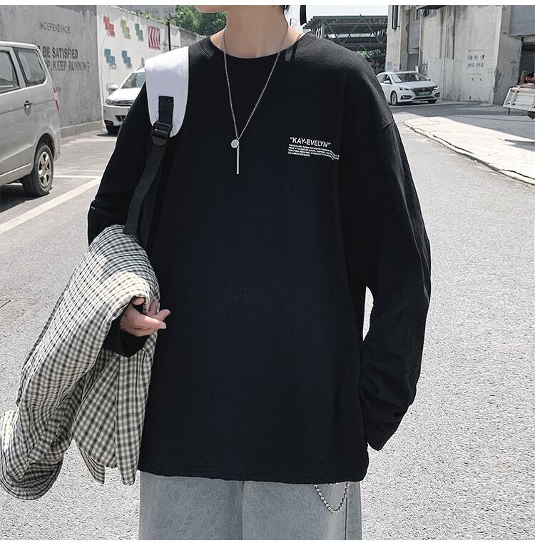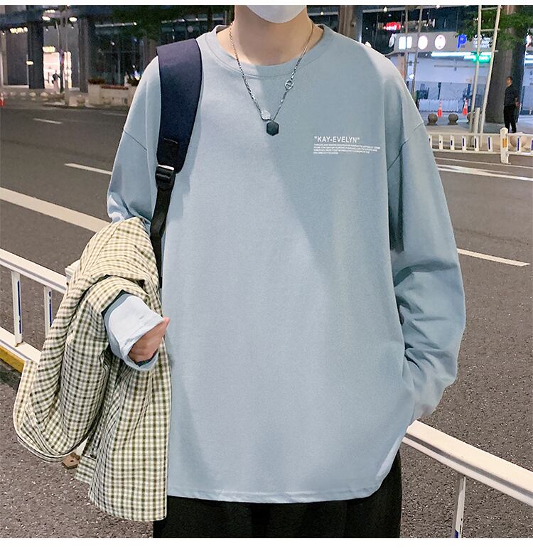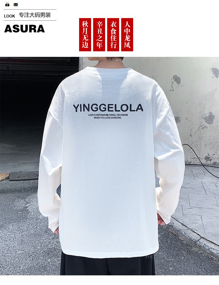 Tシャツ シャツ ルーズラウンドネックオータム ロング コットン 大きめサイズ 秋物 Oネック ASURAプラスサイズメンズ82047409589