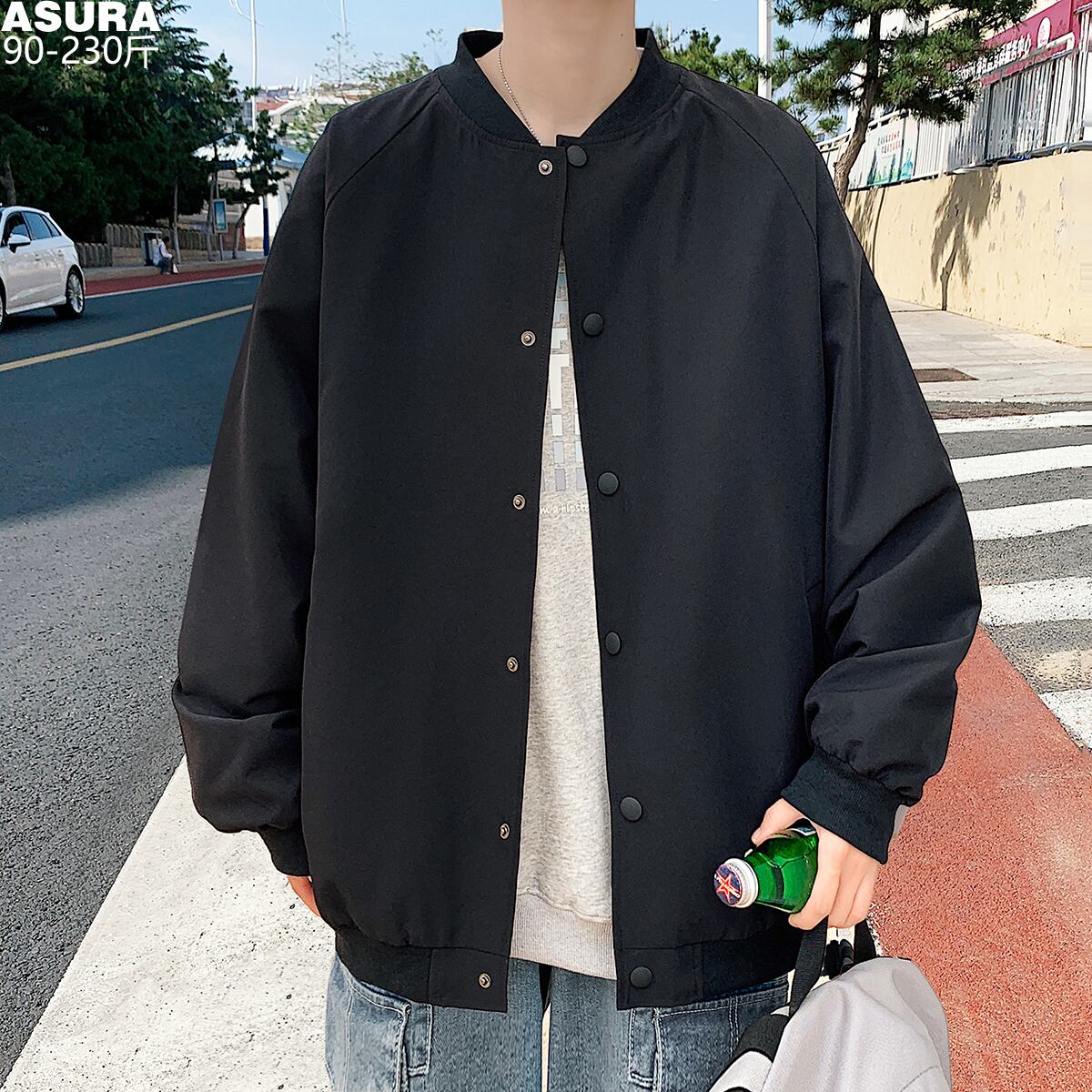 ソリッド カラージャケット ルーズ薄手スプリングオータムスタイル 大きめサイズ 春物 秋物 ソリッドカラー ASURAプラスサイズメンズ70011660328