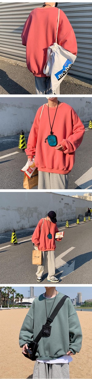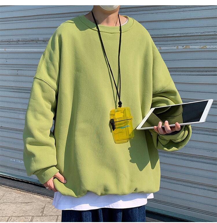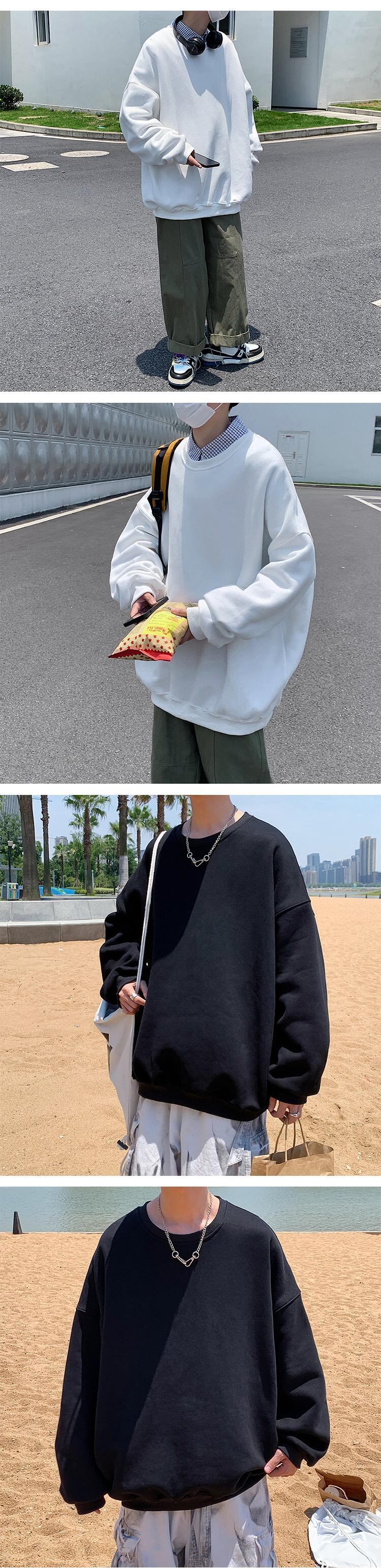 ソリッド カラーセーター ルーズラウンドネックジャケット Tシャツ オータムスタイル ロング 大きめサイズ 秋物 Oネック ソリッドカラー ASURAプラスサイズメンズ3658511934