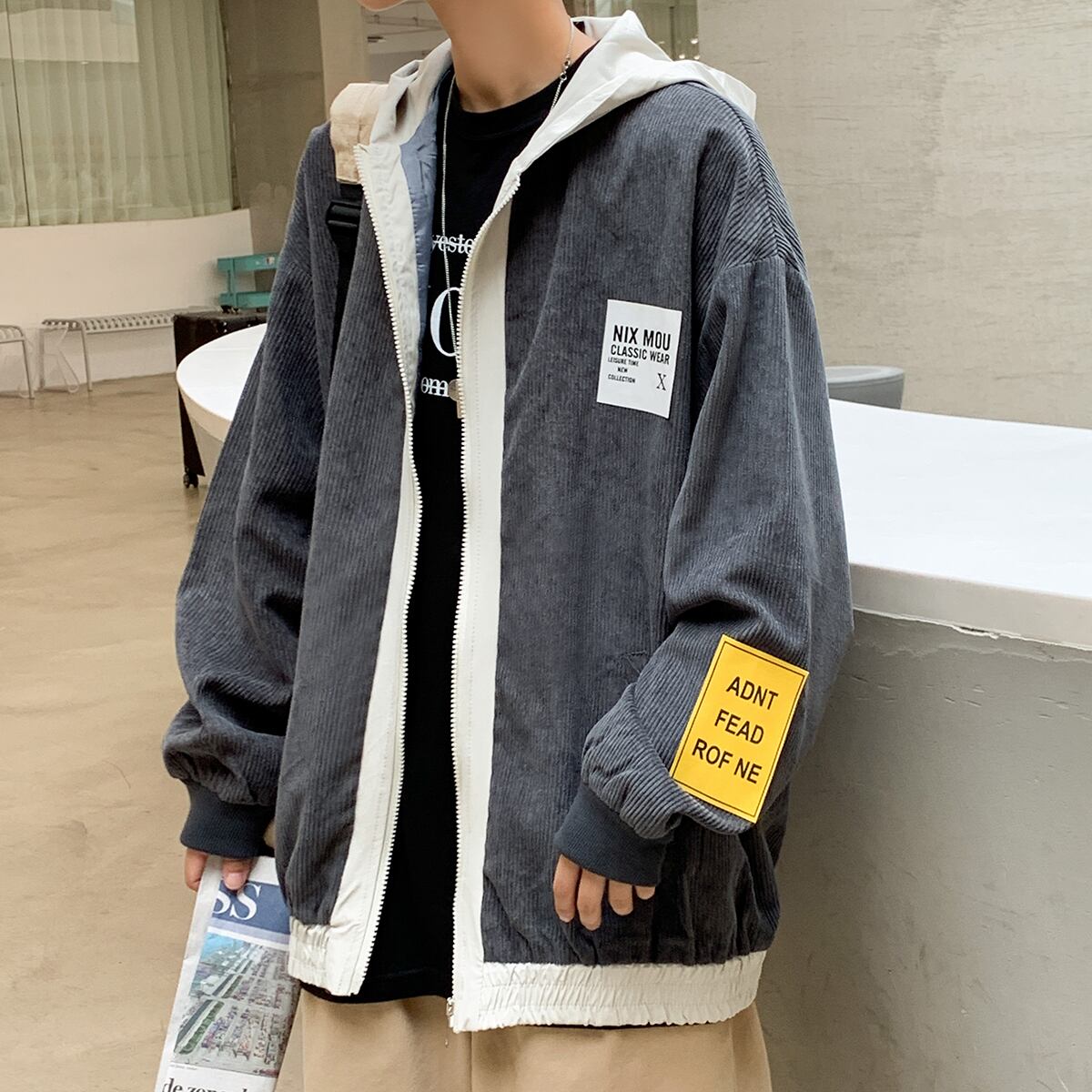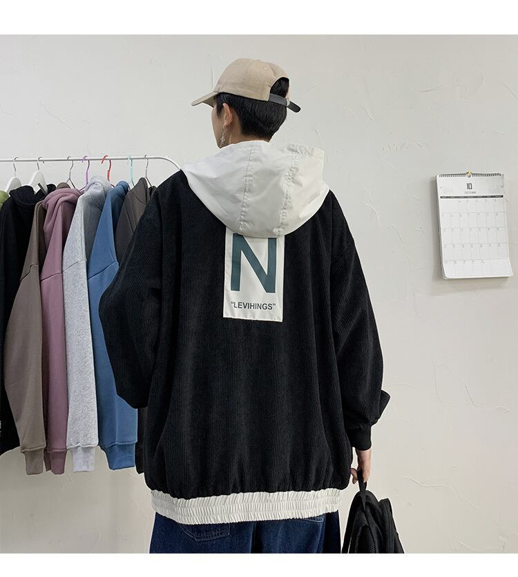 コーデュロイジャケット フードルーズオータムスタイルスタンダード レトロ 大きめサイズ 秋物 ステッチ ASURAプラスサイズメンズ87055444494