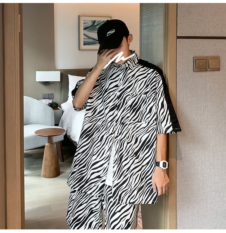 パターンシャツ ショーツ ルーズサマー ストリート 大きめサイズ 夏物 ブルマー ASURAプラスサイズメンズ76833463419