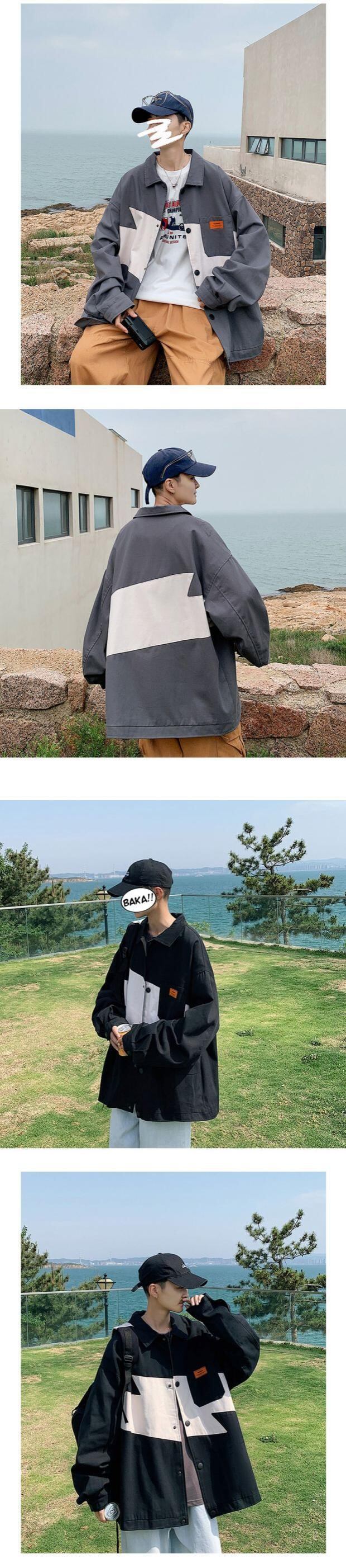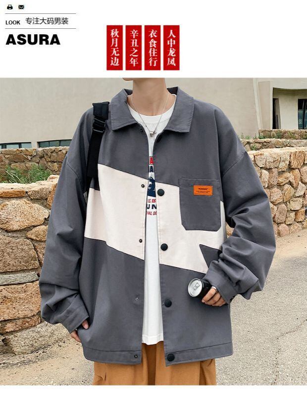カラージャケット カジュアルルーズスプリングオータムスタイル ストリート 大きめサイズ 春物 秋物 ステッチ ASURAプラスサイズメンズ70942402771