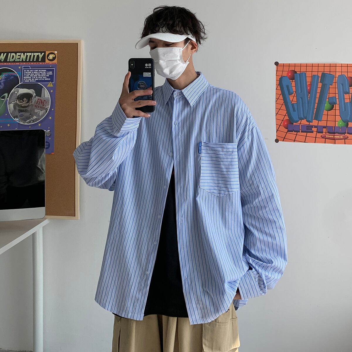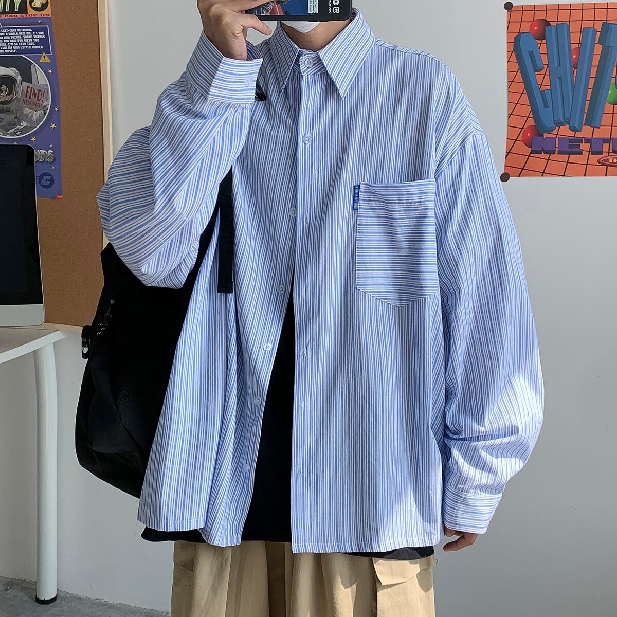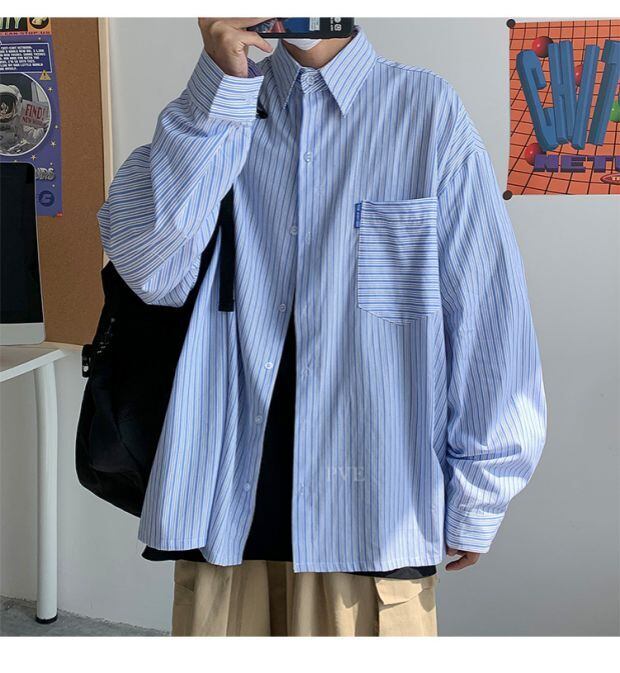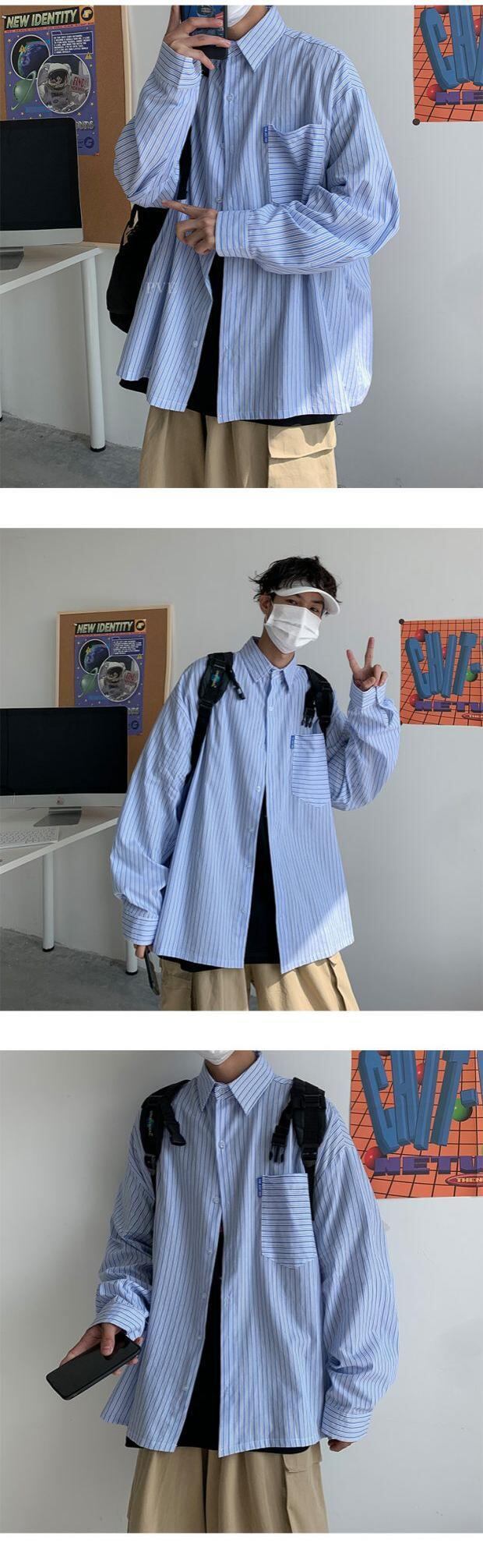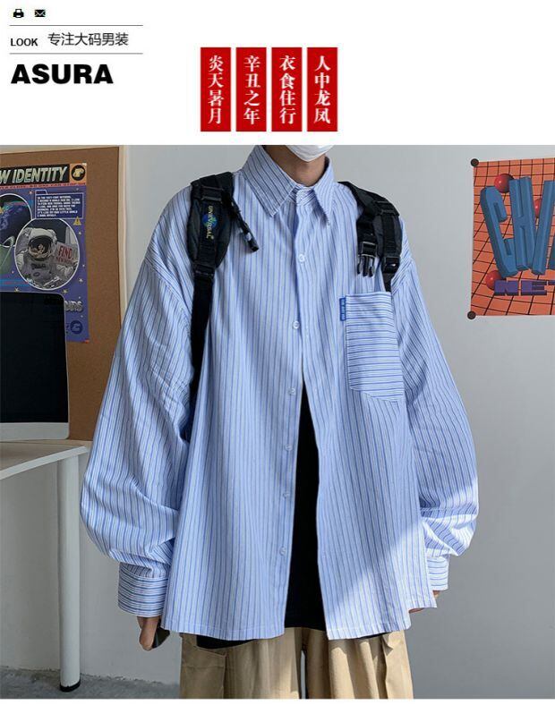 ストライプシャツ ルーズスプリングサマーカジュアルスタイル ロング 大きめサイズ 春物 夏物 ASURAプラスサイズメンズ30359276375