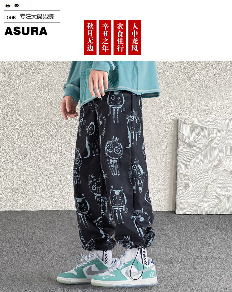 ルーズパンツ 薄手サマーオータム ストリート 大きめサイズ 夏物 秋物 シルク ASURAプラスサイズメンズ77630389115