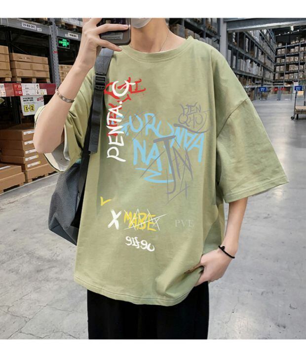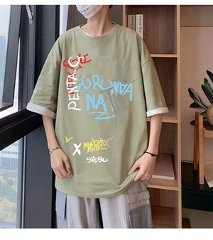 Tシャツ ルーズラウンドネックカジュアルサマー 大きめサイズ 夏物 Oネック ASURAプラスサイズメンズ36317062883