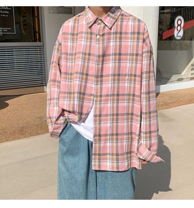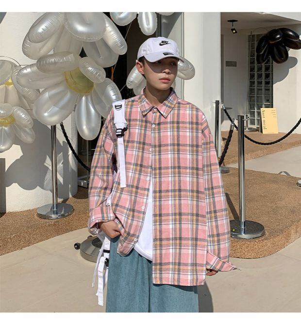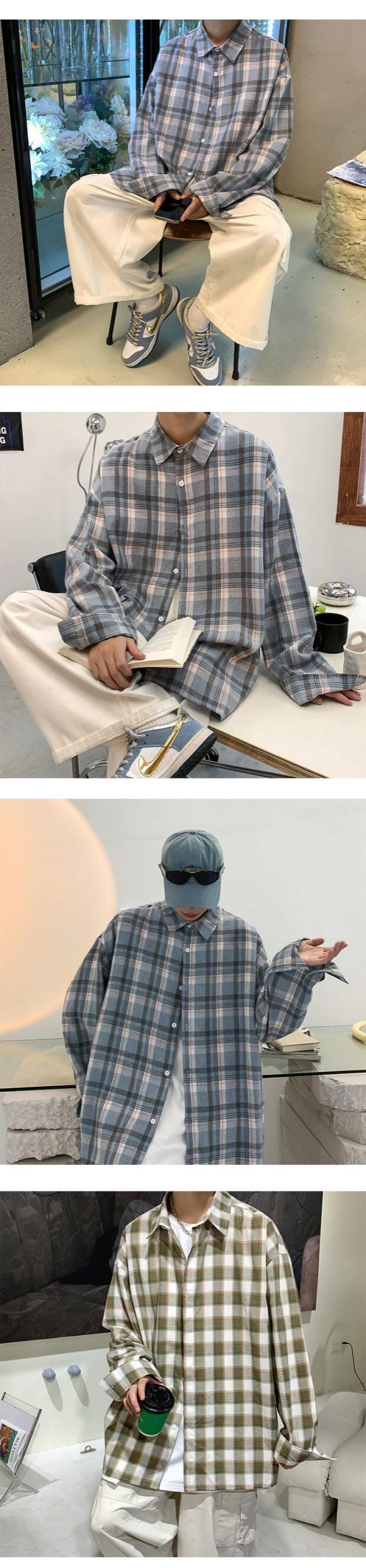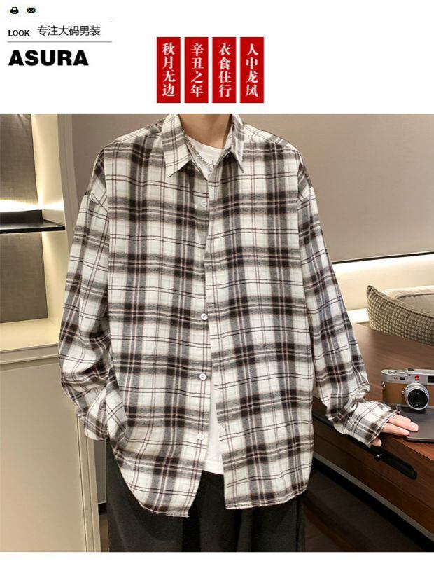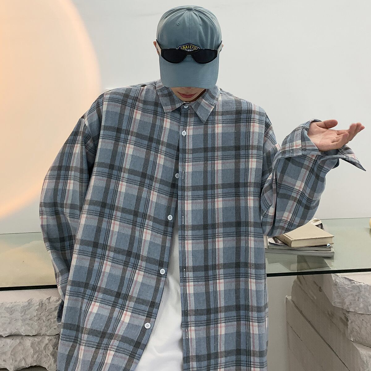 格子柄シャツ ルーズオータムスタイル ロング 大きめサイズ 秋物 ASURAプラスサイズメンズ76423969025