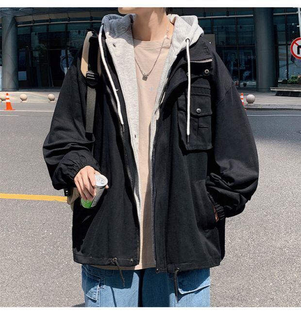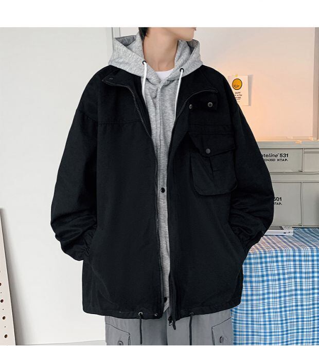 ジャケット カジュアルルーズフードスプリングオータム ストリート 大きめサイズ 春物 秋物 ASURAプラスサイズメンズ20243345556