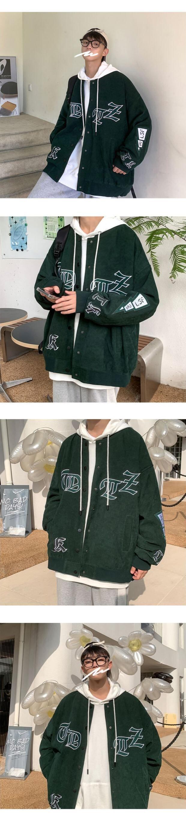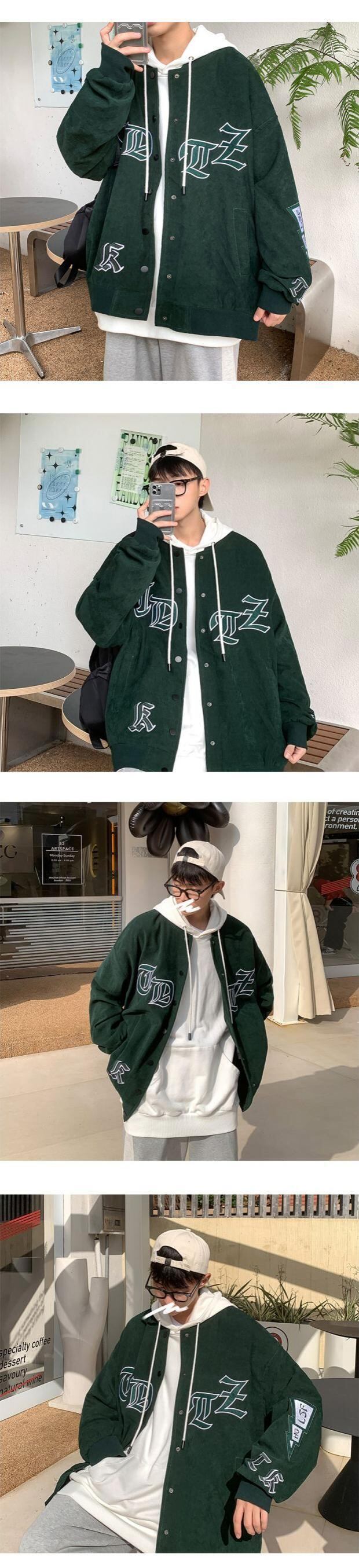 ジャケット ルーズオータムスタイルスタンダード レッド レトロ 刺繍 大きめサイズ 秋物 ASURAプラスサイズメンズ83813152494
