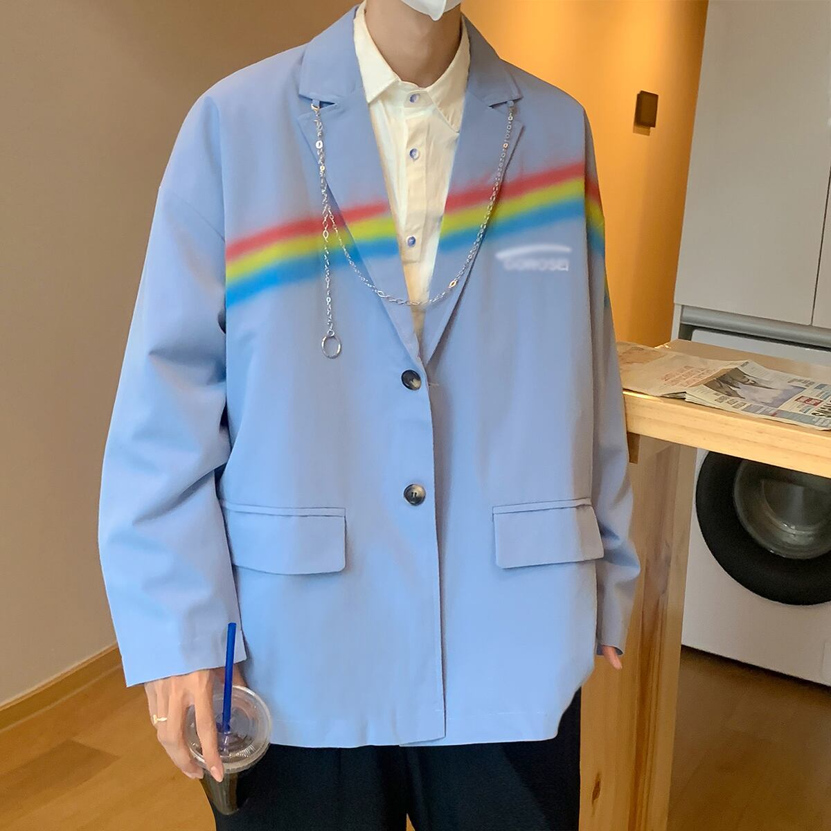 チェーン カジュアルジャケット ルーズオータム 大きめサイズ 秋物 ASURAプラスサイズメンズ55824319905