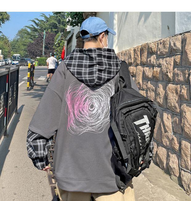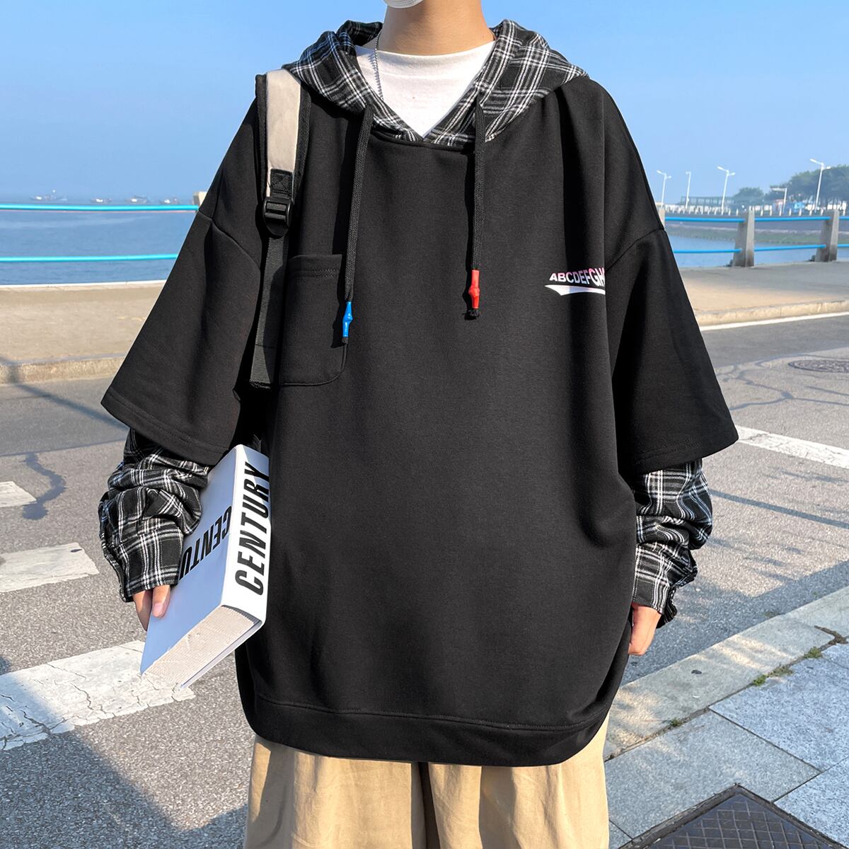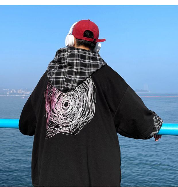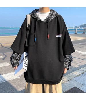 格子柄セーター ジャケット フードルーズスプリングスタイル 大きめサイズ 春物 ASURAプラスサイズメンズ69662427979