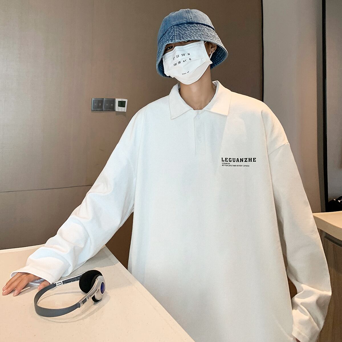 スリットシャツ Tシャツ ルーズスプリングオータムカジュアルスタイル ロング 大きめサイズ 春物 秋物 ASURAプラスサイズメンズ49738318681