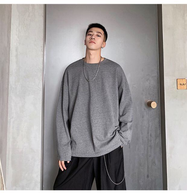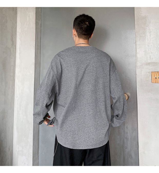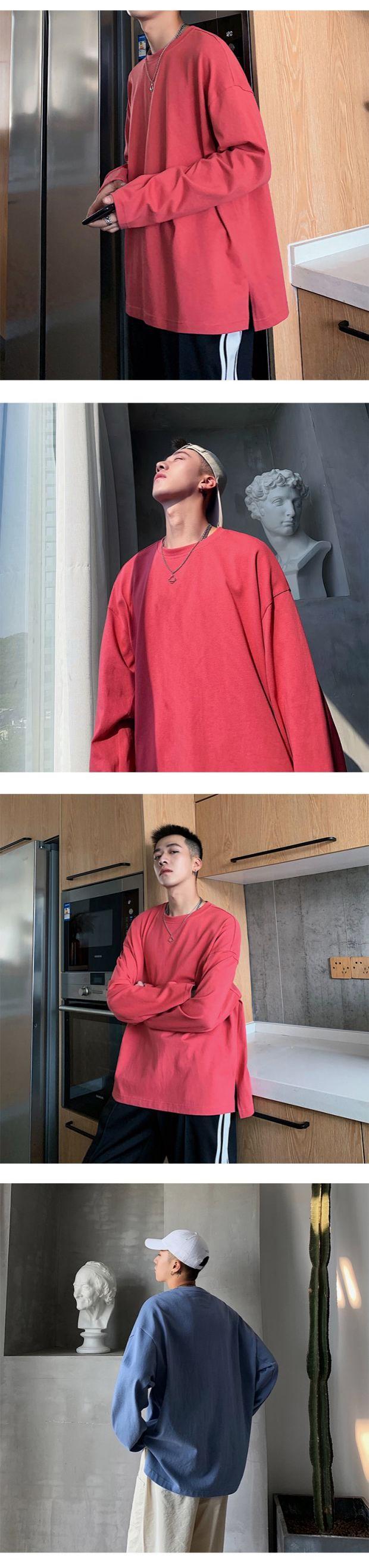 カラーTシャツ シャツ ラウンドネックルーズスプリング ロング コットン 大きめサイズ 春物 Oネック ASURAプラスサイズメンズ65417534244