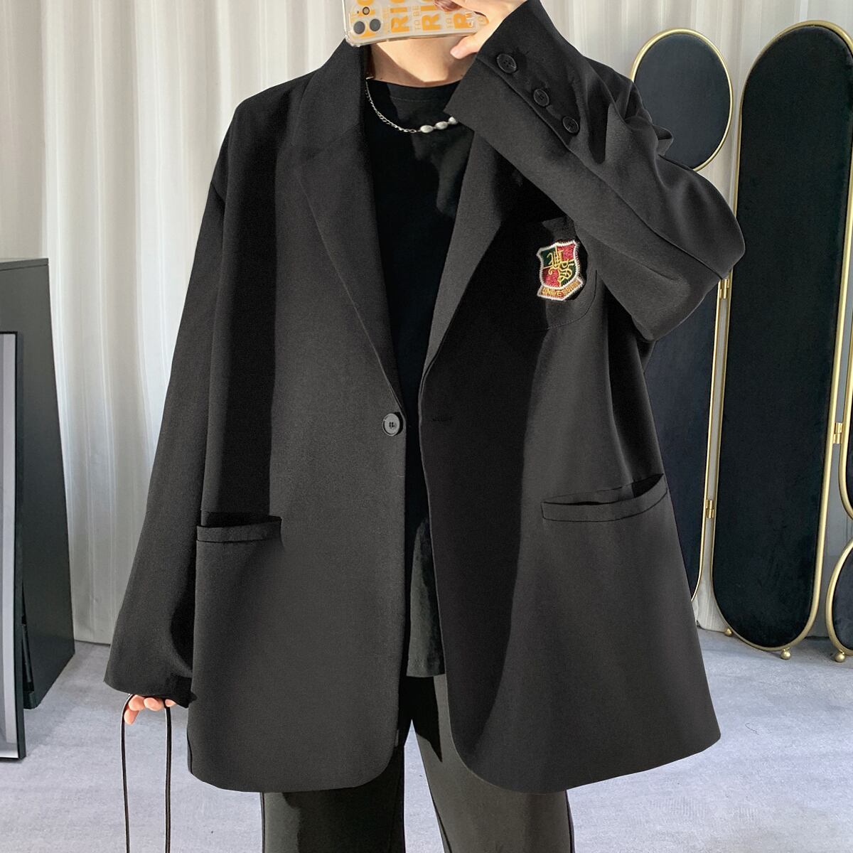 ジャケット ルーズスプリングオータムカジュアル ロング レッド 刺繍 大きめサイズ 春物 秋物 ヨーロピアン ASURAプラスサイズメンズ42040793038