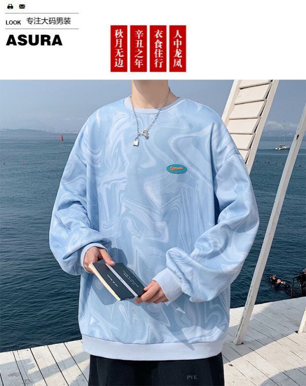セーター ルーズラウンドネックジャケット スプリングオータムTシャツ ロング ストリート 大きめサイズ 春物 秋物 Oネック ASURAプラスサイズメンズ81381128838