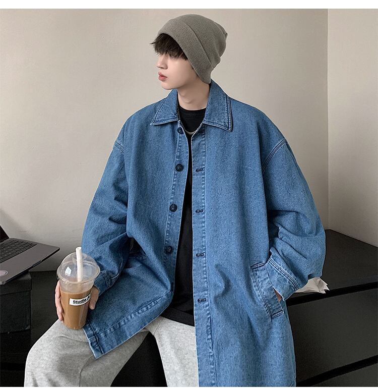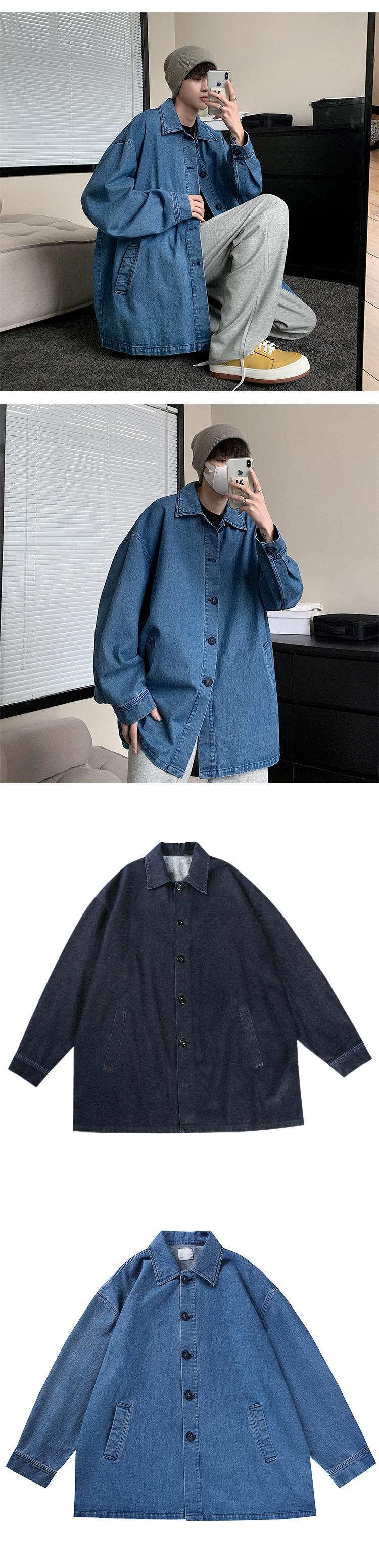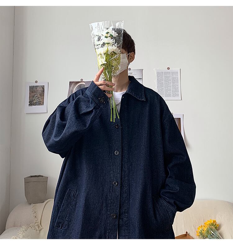 シャツ ルーズスプリングオータムジャケット スタンダード ロング レトロ 大きめサイズ 春物 秋物 ASURAプラスサイズメンズ35477476049