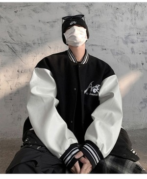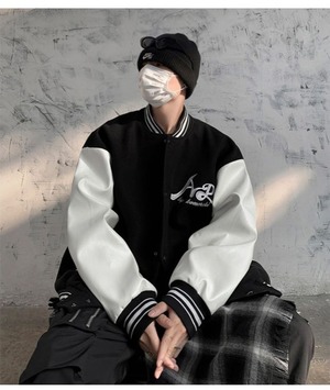 レザー刺繍コート ジャケット ルーズオータム 大きめサイズ 秋物 ステッチ ASURAプラスサイズメンズ30440066331
