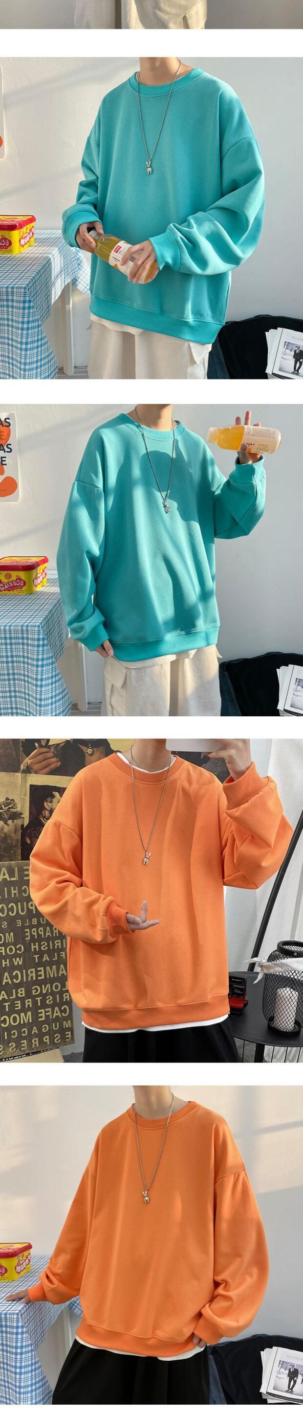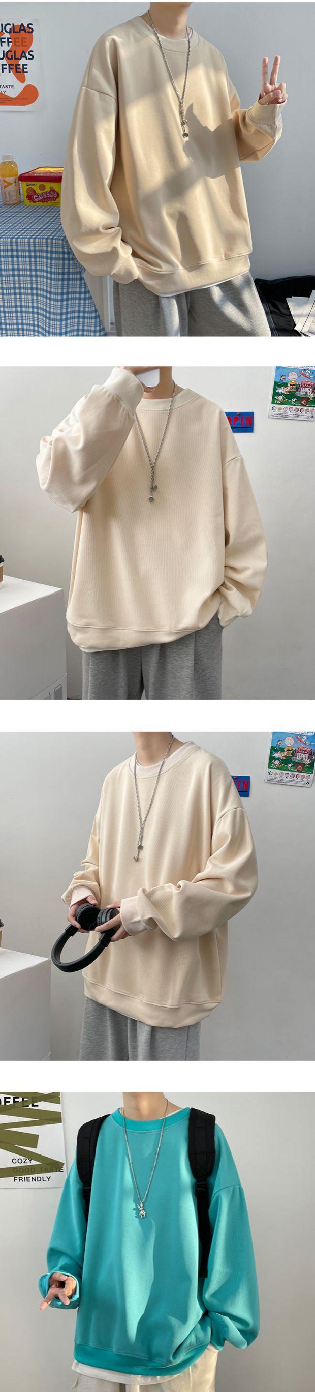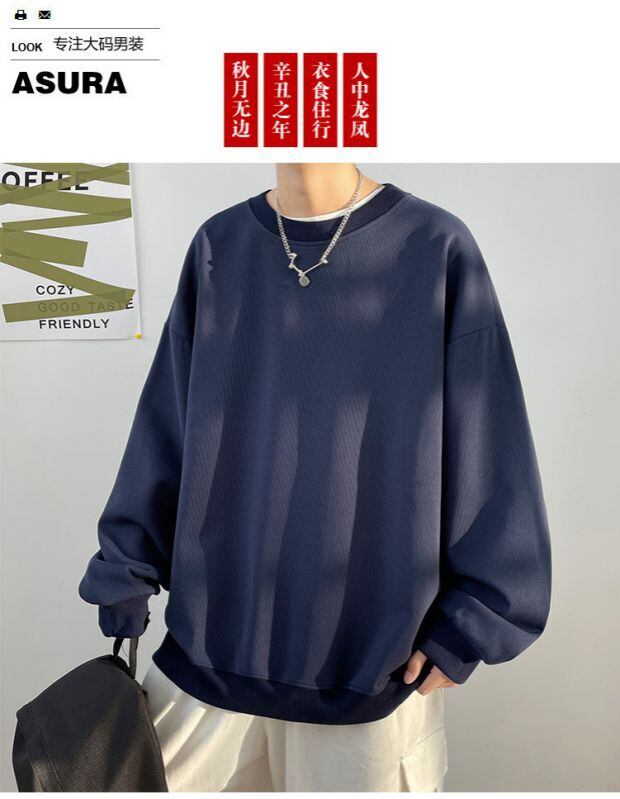 ソリッド カラーセーター ルーズTシャツ ラウンドネックジャケット スプリングオータム ロング 大きめサイズ 春物 秋物 Oネック ソリッドカラー ASURAプラスサイズメンズ9327689265