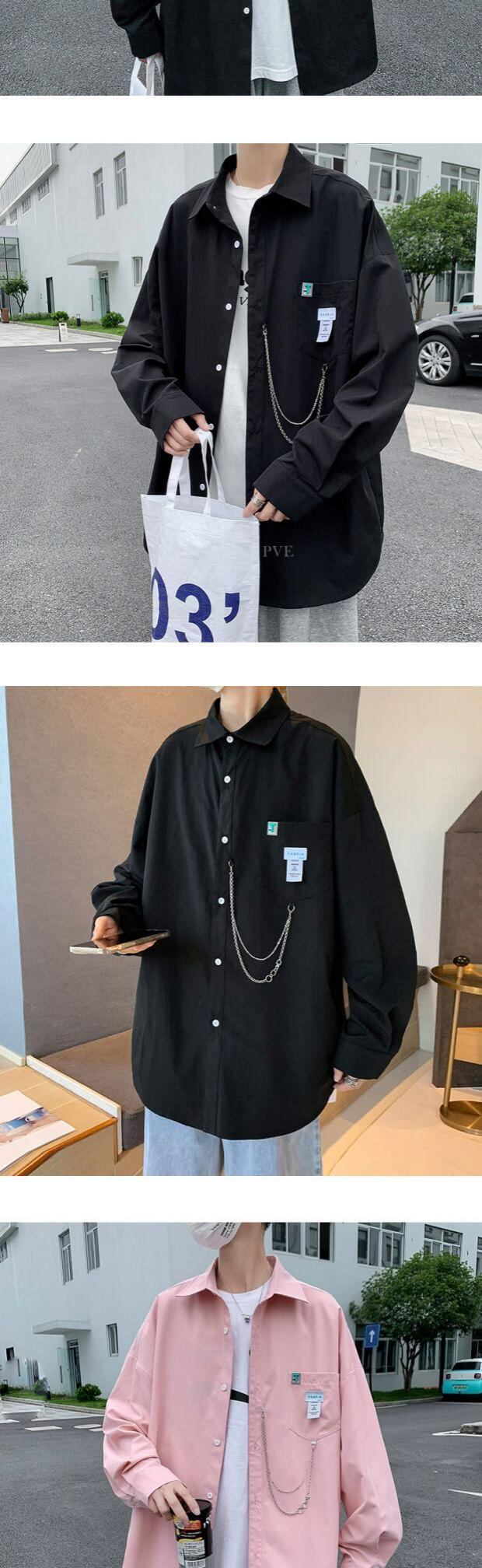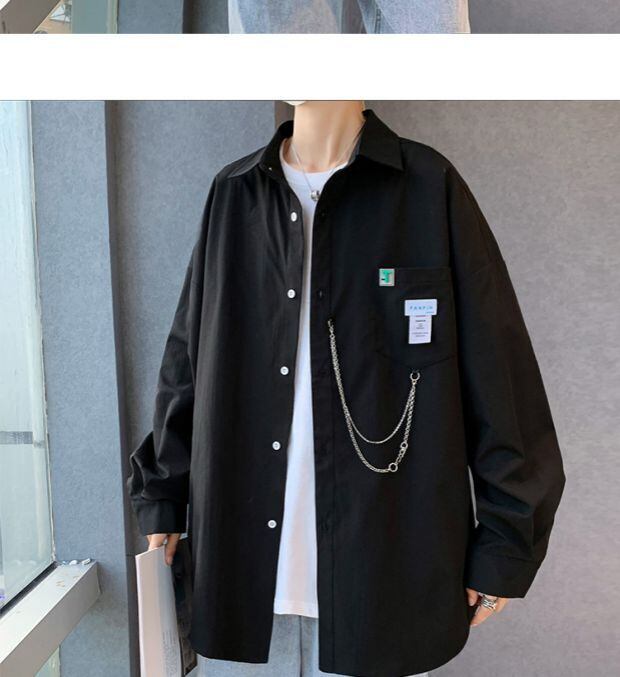 シャツルーズスプリングオータムチェーン ロング 大きめサイズ 春物 秋物 ASURAプラスサイズメンズ68290879760