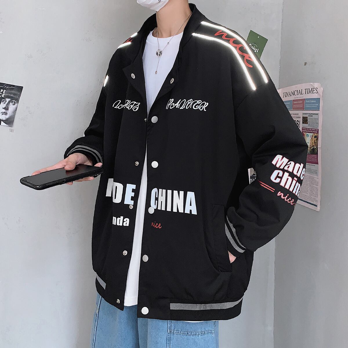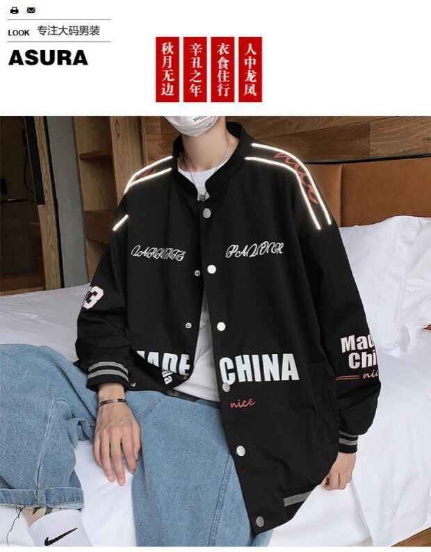 ストライプジャケット ルーズスプリングオータムトップス ストリート 大きめサイズ 春物 秋物 ASURAプラスサイズメンズ21322903441